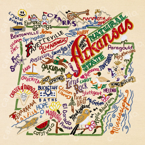 Arkansas Hand-Embroidered Pillow