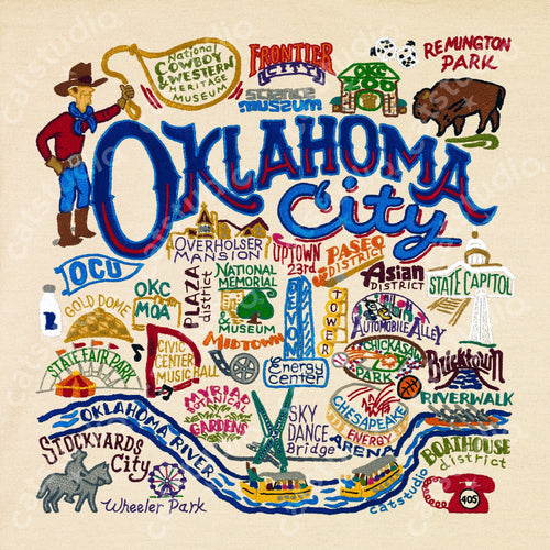 Oklahoma City Hand-Embroidered Pillow