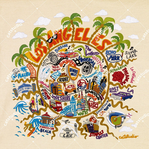 Los Angeles Hand-Embroidered Pillow - catstudio