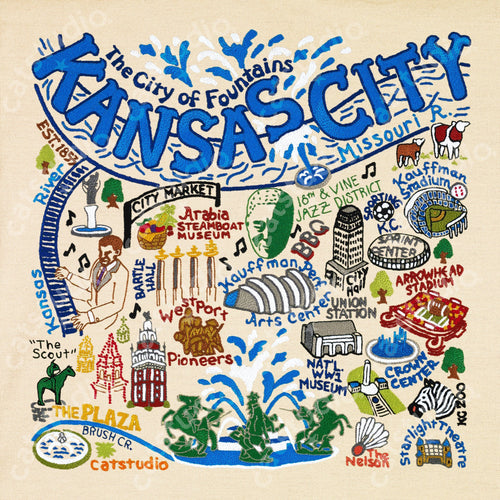 Kansas City Hand-Embroidered Pillow