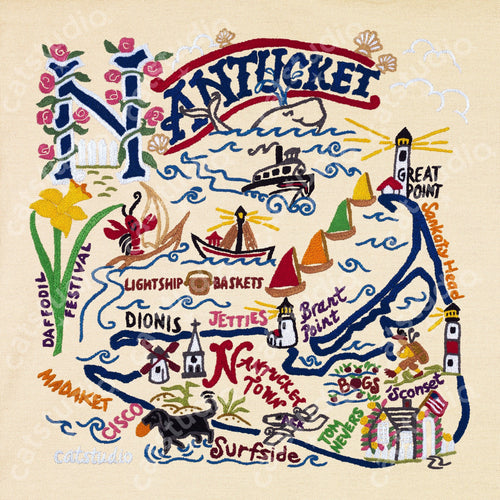 At catstudio, we believe your vacation memories deserve to be cherished long after your trip ends. That's why we've created a charming collection of region and resort-themed home decor and holiday gifts. They feature beautifully illustrated designs on embroidered pillows, dish towels, and glasses.