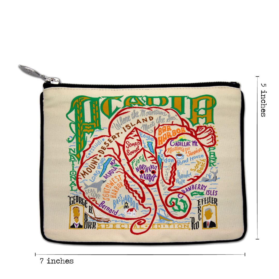 Where the mountains meet the sea...This original design celebrates the beauty of Acadia National Park located on Mount Desert Island, off the coast of Maine. Featuring natural habitats of gorgeous coastlines, wooded areas, mountains, and sparkling ponds.Our original design is uniquely woven (not printed!) into a handy-sized zip pouch - perfect for toting your keys, cash & credit cards, cosmetics - all your small necessities! Complete with chic zipper and pull, and our signature Geo black lining. Conveniently sized at 5x7 inches.