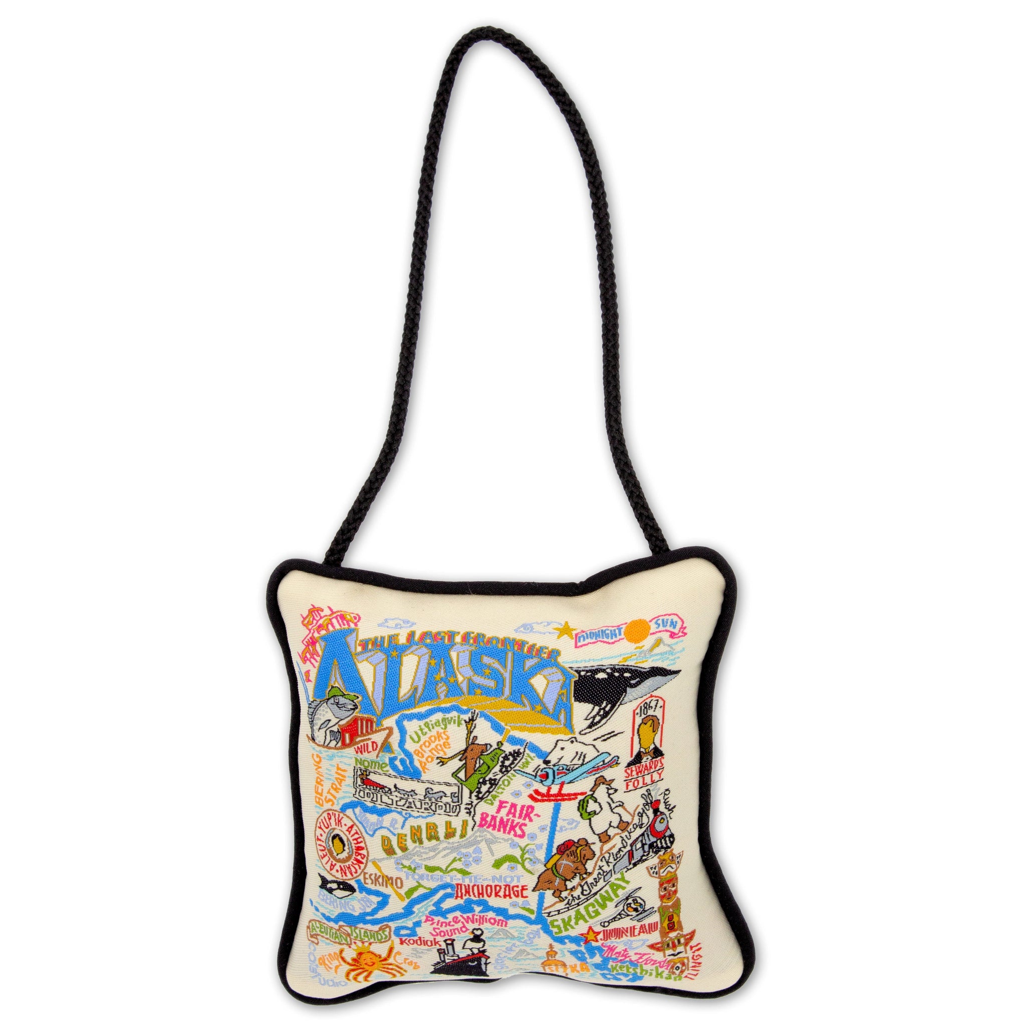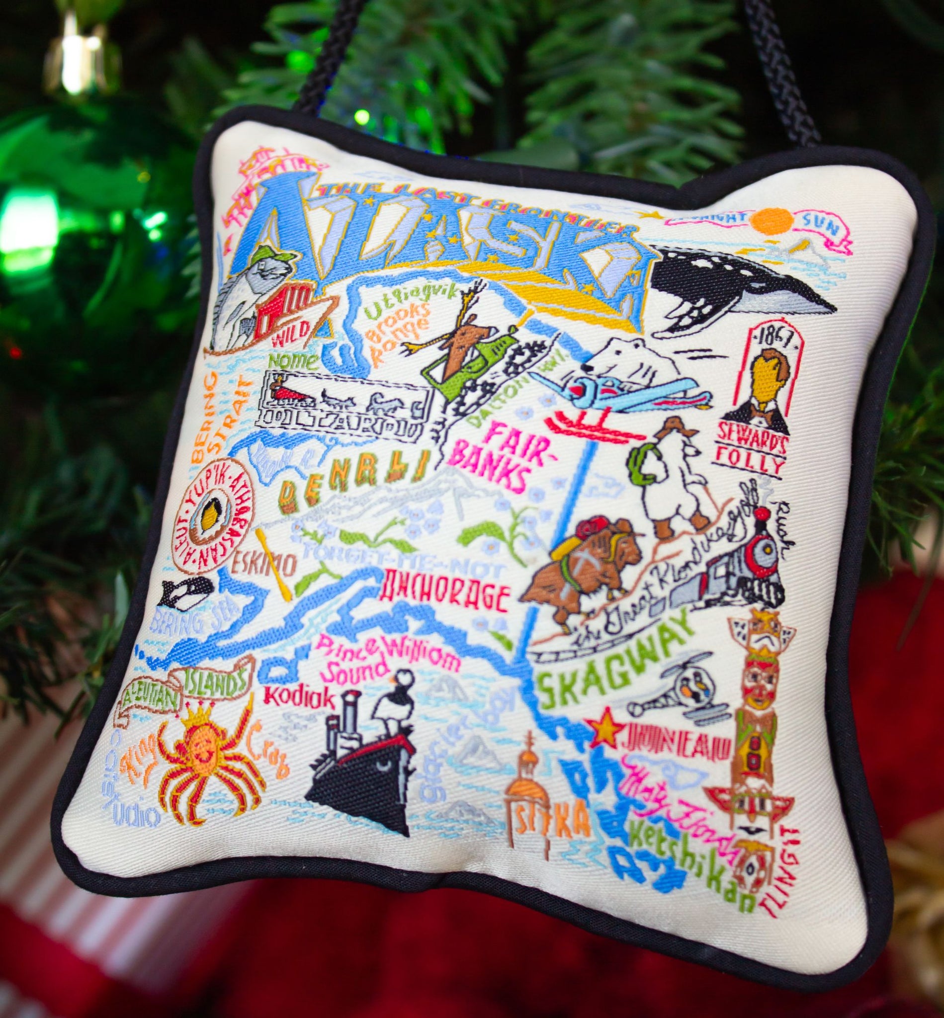 Our original design is uniquely woven (not printed!), then sewn into an adorable, 4-inch miniature pillow ornament. Complete with a cord for hanging from your Christmas tree, doorknob—you name it!