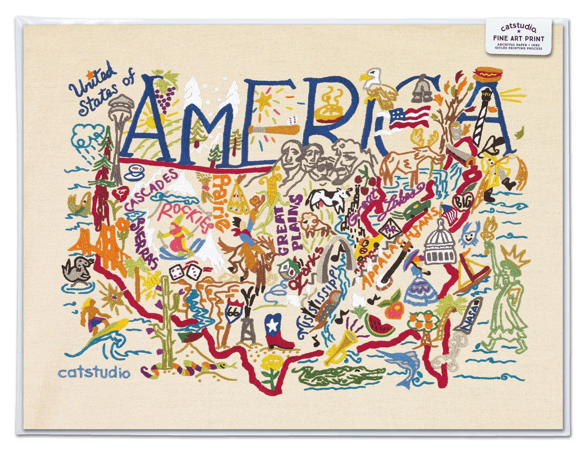 From shore to shore there's 3,537,441 square miles in the continental USA and we squeezed them onto this bright and cheery fine art print.