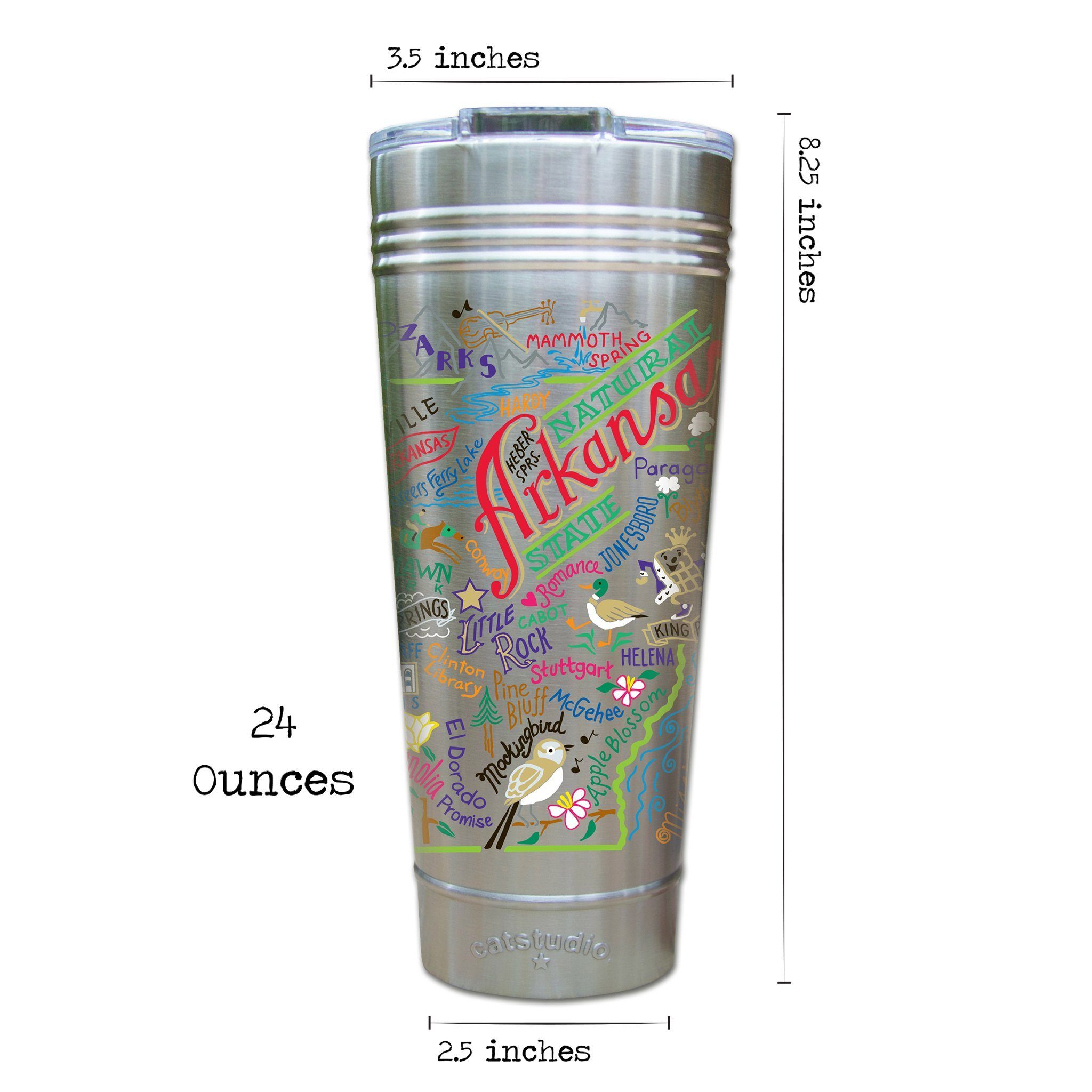 They don't call it the Natural State for nothing! This original design celebrates the State of Arkansas.Our original art is now available to bring along on all your on-the-go adventures. This triple-walled 24 ounce thermal tumbler amazingly keeps beverages HOT for 4 hours and COLD for 6 hours. Add ice for up to 12 hours of cool sipping! Features a thoughtfully-engineered magnetic closure and a non-slip bottom to prevent spills and wet marks on surfaces. Innovation at its finest. Yippee!