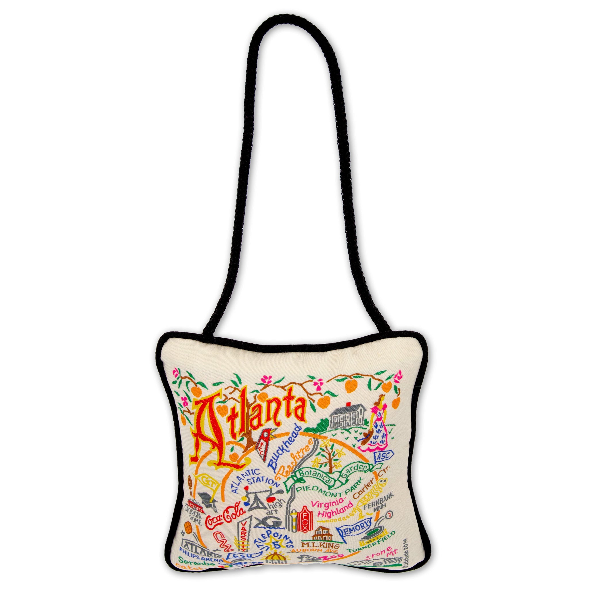 Our original design is uniquely woven (not printed!), then sewn into an adorable, 4-inch miniature pillow ornament. Complete with a cord for hanging from your Christmas tree, doorknob—you name it!
