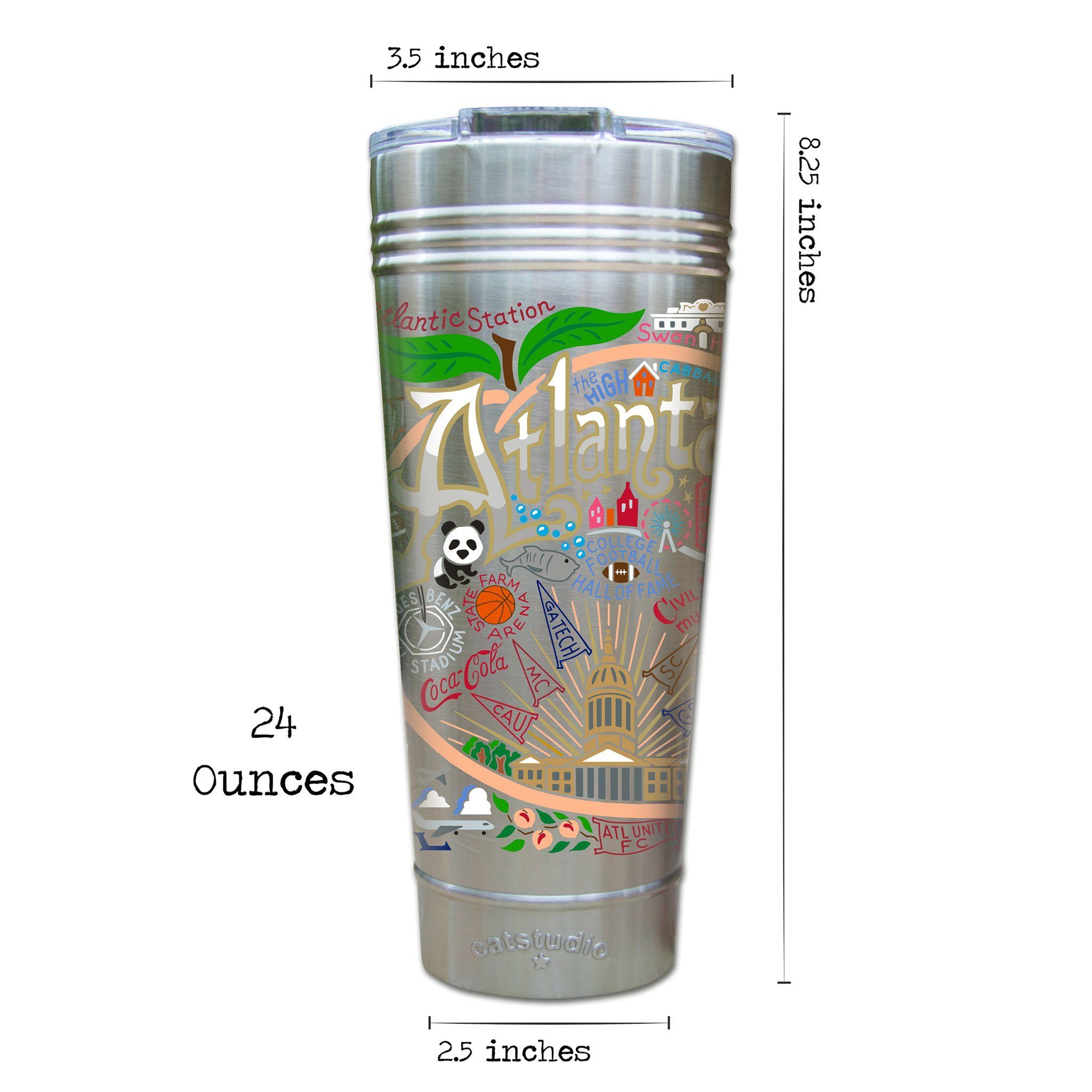 This original design celebrates the City of Hotlanta, er, we mean Atlanta!Our original art is now available to bring along on all your on-the-go adventures. This triple-walled 24 ounce thermal tumbler amazingly keeps beverages HOT for 4 hours and COLD for 6 hours. Add ice for up to 12 hours of cool sipping! Features a thoughtfully-engineered magnetic closure and a non-slip bottom to prevent spills and wet marks on surfaces. Innovation at its finest. Yippee!