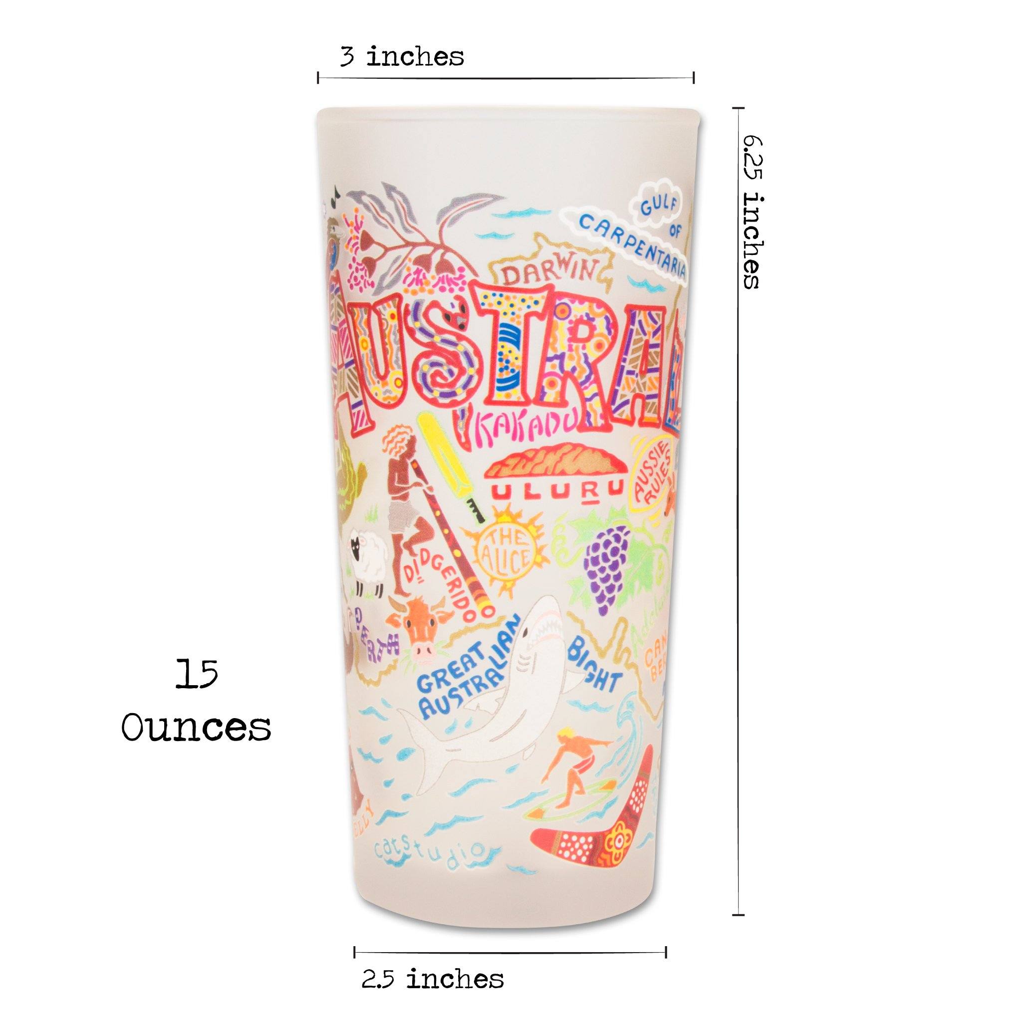 Our original design is amazingly rendered using organic inks of unlimited vibrant colors plus silver and gold. The high quality 15-ounce frosted glass is dishwasher safe. Cheers and bottoms up!
