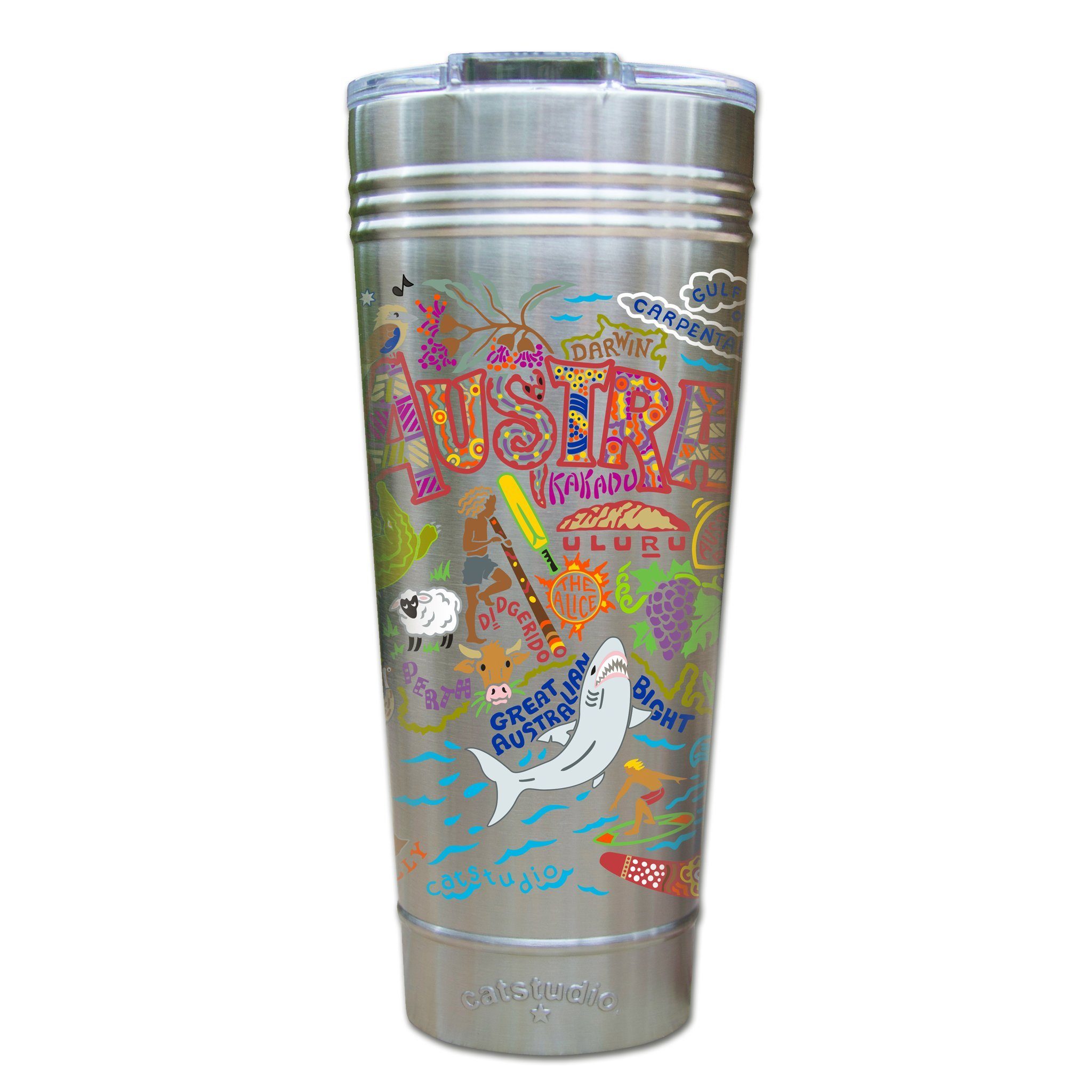 G'day, mates! This original design celebrates the Country of Australia!Our original art is now available to bring along on all your on-the-go adventures. This triple-walled 24 ounce thermal tumbler amazingly keeps beverages HOT for 4 hours and COLD for 6 hours. Add ice for up to 12 hours of cool sipping! Features a thoughtfully-engineered magnetic closure and a non-slip bottom to prevent spills and wet marks on surfaces. Innovation at its finest. Yippee!