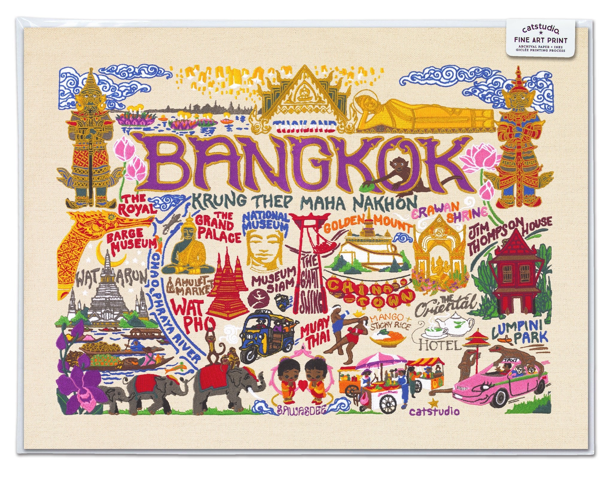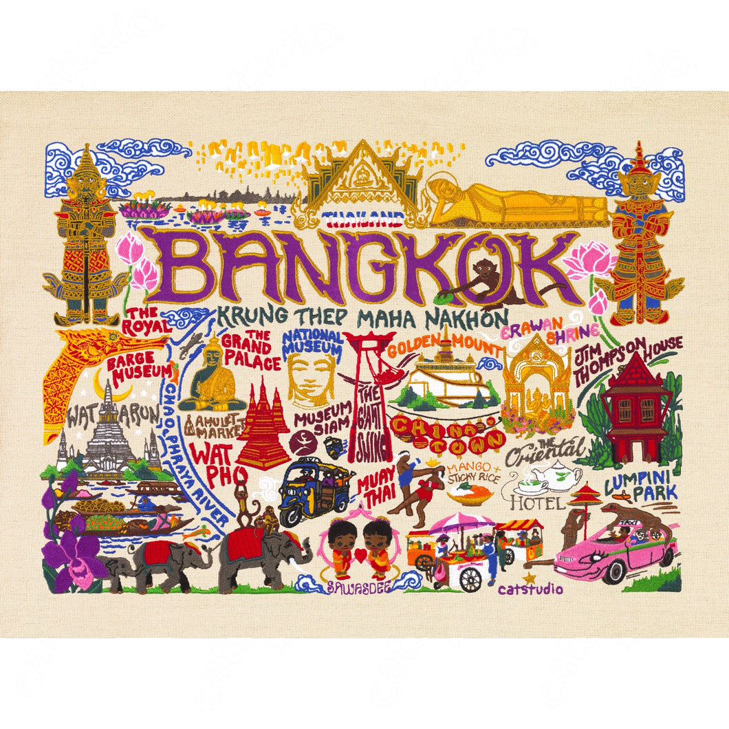 This original design celebrates the magnificent and vibrant city of Bangkok, Thailand in beautiful detail!