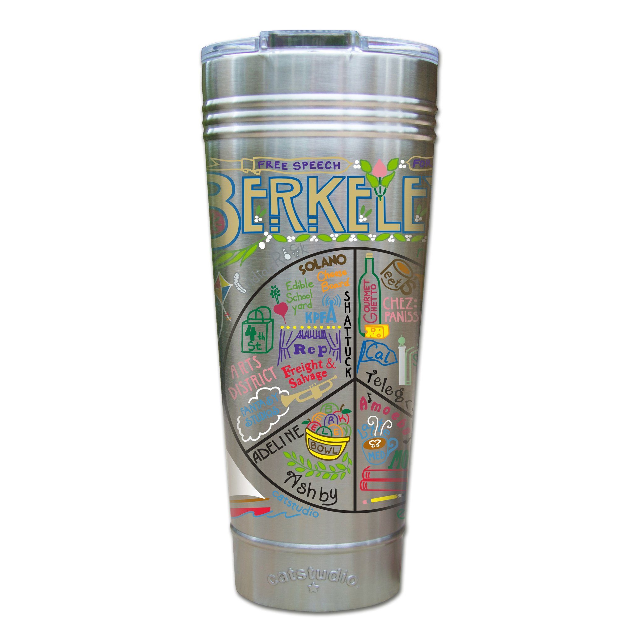 Free speech for all! This original design celebrates the City of Berkeley, California.Our original art is now available to bring along on all your on-the-go adventures. This triple-walled 24 ounce thermal tumbler amazingly keeps beverages HOT for 4 hours and COLD for 6 hours. Add ice for up to 12 hours of cool sipping! Features a thoughtfully-engineered magnetic closure and a non-slip bottom to prevent spills and wet marks on surfaces. Innovation at its finest. Yippee!