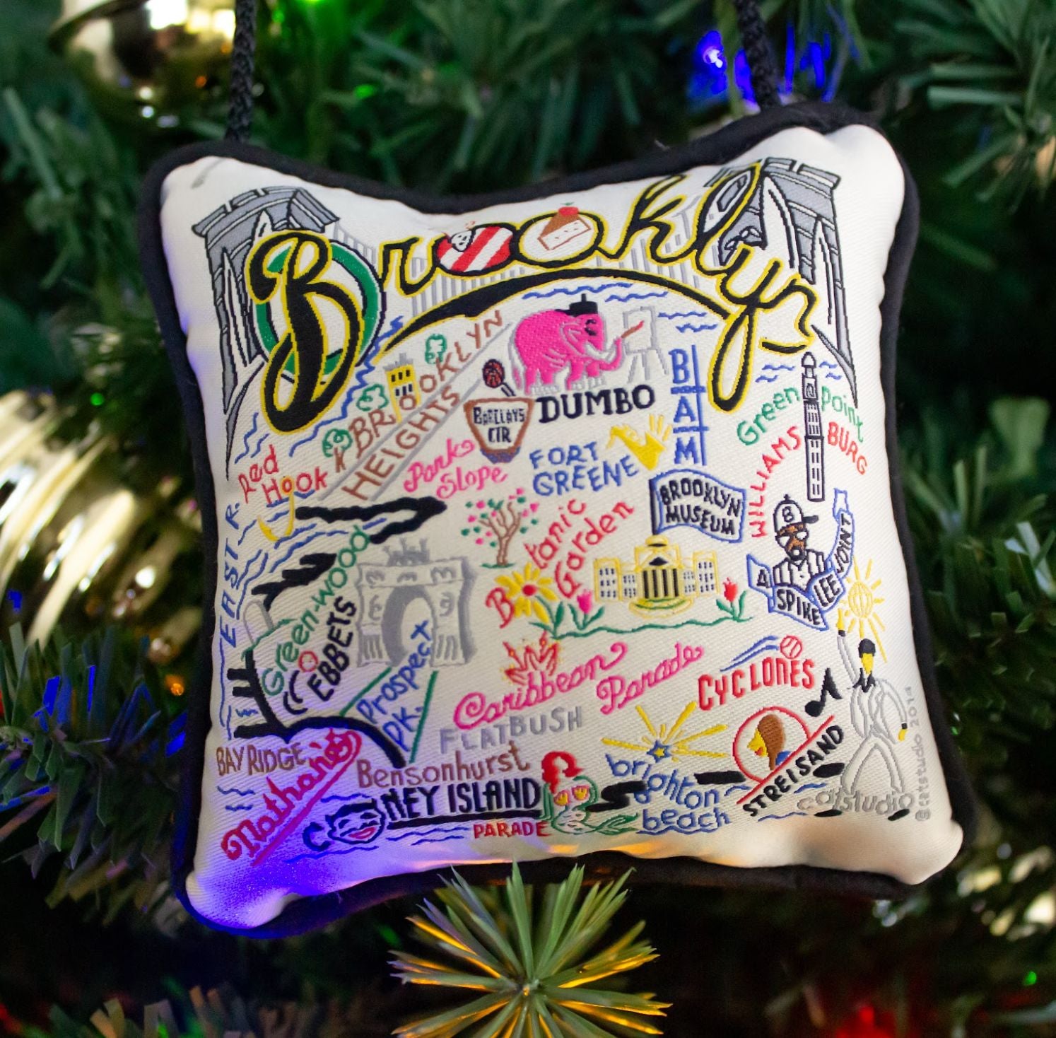 Our original design is uniquely woven (not printed!), then sewn into an adorable, 4-inch miniature pillow ornament. Complete with a cord for hanging from your Christmas tree, doorknob—you name it!