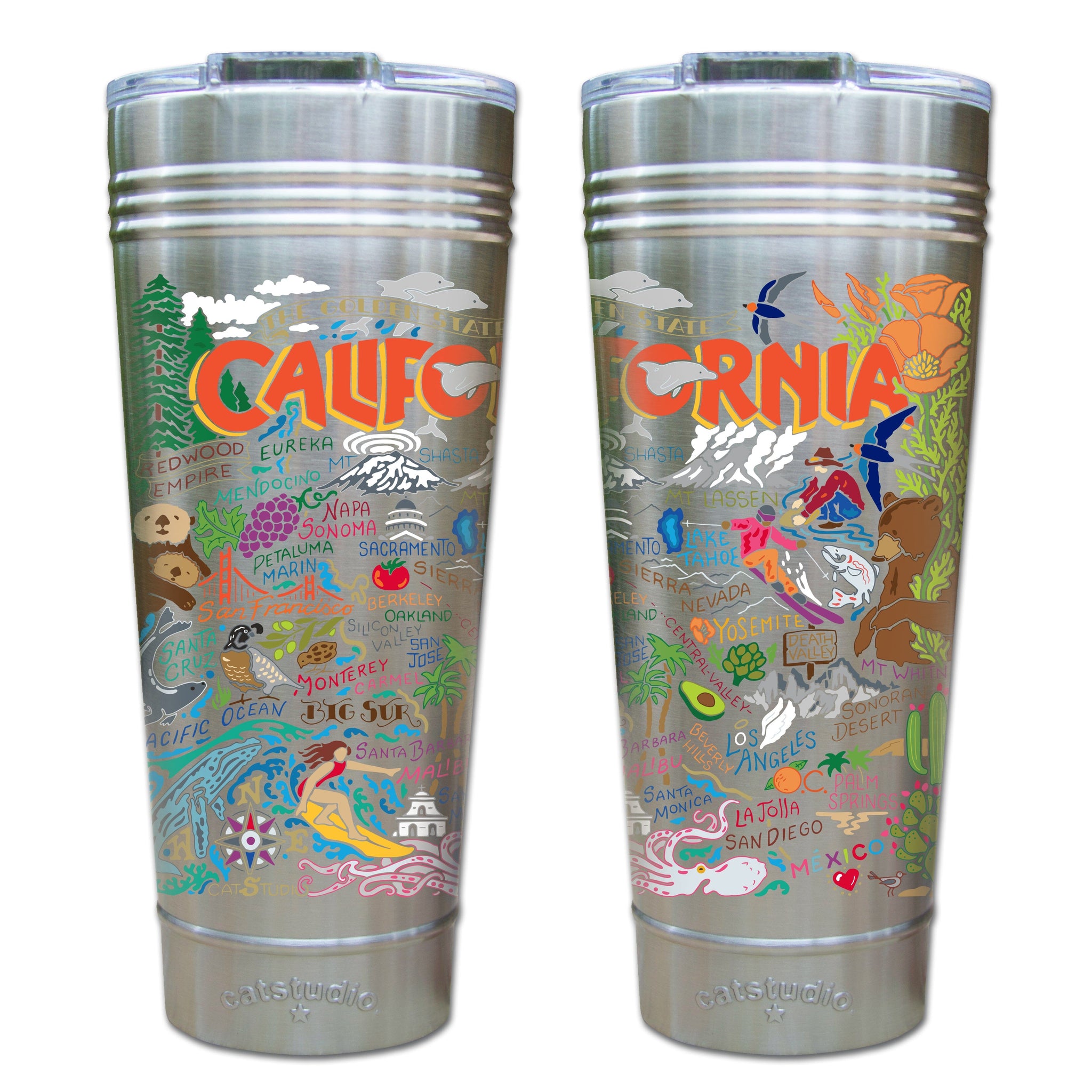 The Golden State...and home to catstudio! This original design celebrates the State of California.Our original art is now available to bring along on all your on-the-go adventures. This triple-walled 24 ounce thermal tumbler amazingly keeps beverages HOT for 4 hours and COLD for 6 hours. Add ice for up to 12 hours of cool sipping! Features a thoughtfully-engineered magnetic closure and a non-slip bottom to prevent spills and wet marks on surfaces. Innovation at its finest. Yippee!