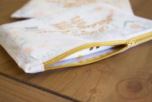 Our original design is printed using the labor intensive hand-swipe silk-screen process with 12 colors including metallic silver and gold (that's 12 screens used for each towel!). The design is accented with gold embroidery on a hand-loomed luxe cotton-linen towel generously sized at 17x30inches. All this delightfully presented in a fab organdy re-usable zip pouch ready for gifting!