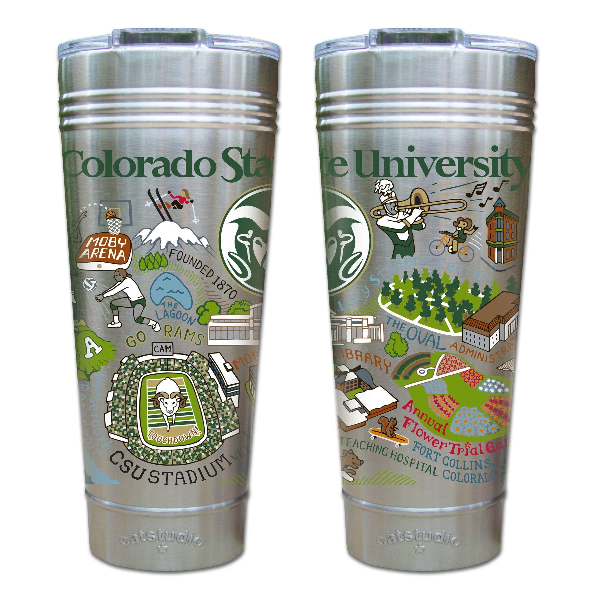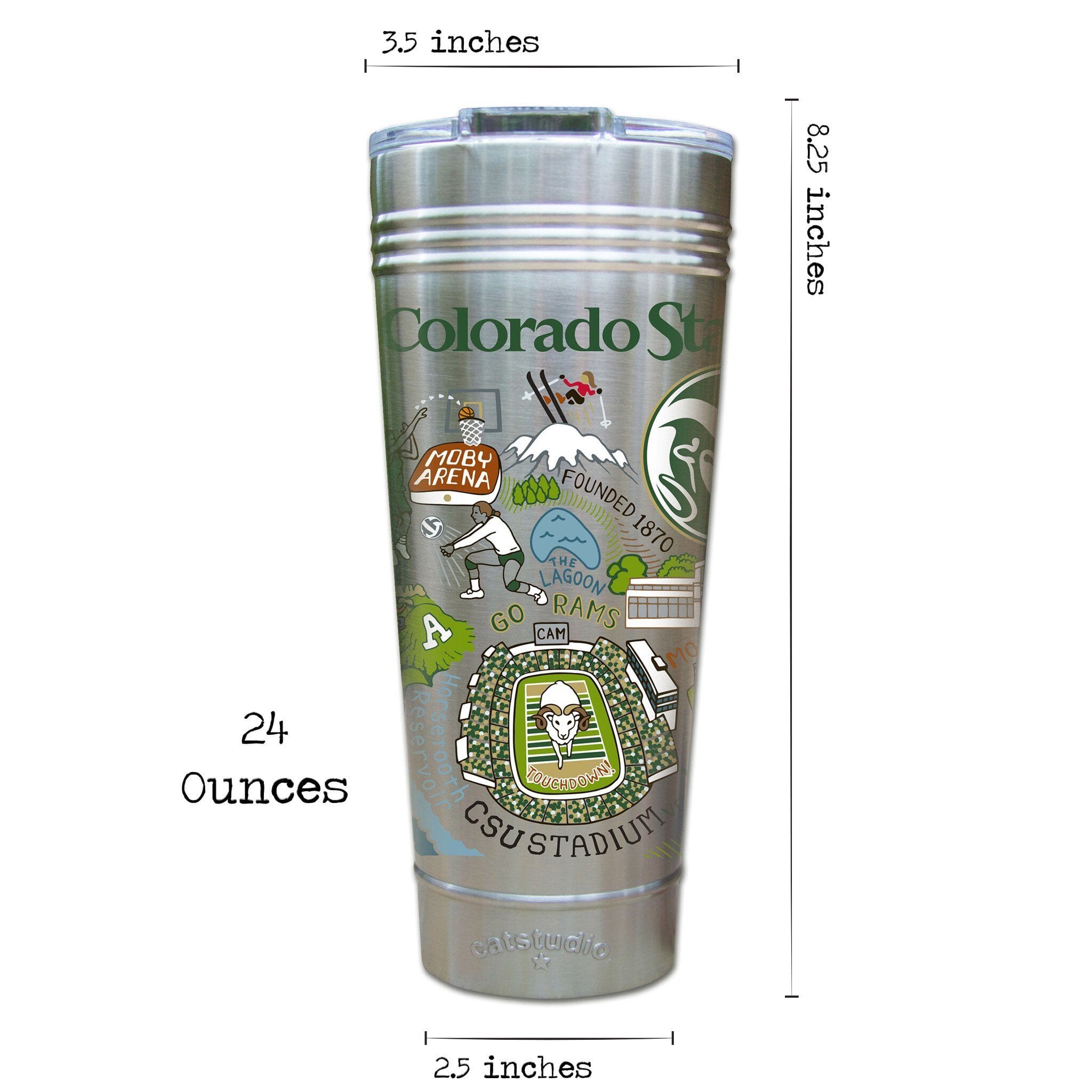This original design celebrates Colorado State University. Go Rams!Our original art is now available to bring along on all your on-the-go adventures. This triple-walled 24 ounce thermal tumbler amazingly keeps beverages HOT for 4 hours and COLD for 6 hours. Add ice for up to 12 hours of cool sipping! Features a thoughtfully-engineered magnetic closure and a non-slip bottom to prevent spills and wet marks on surfaces. Innovation at its finest. Yippee!
