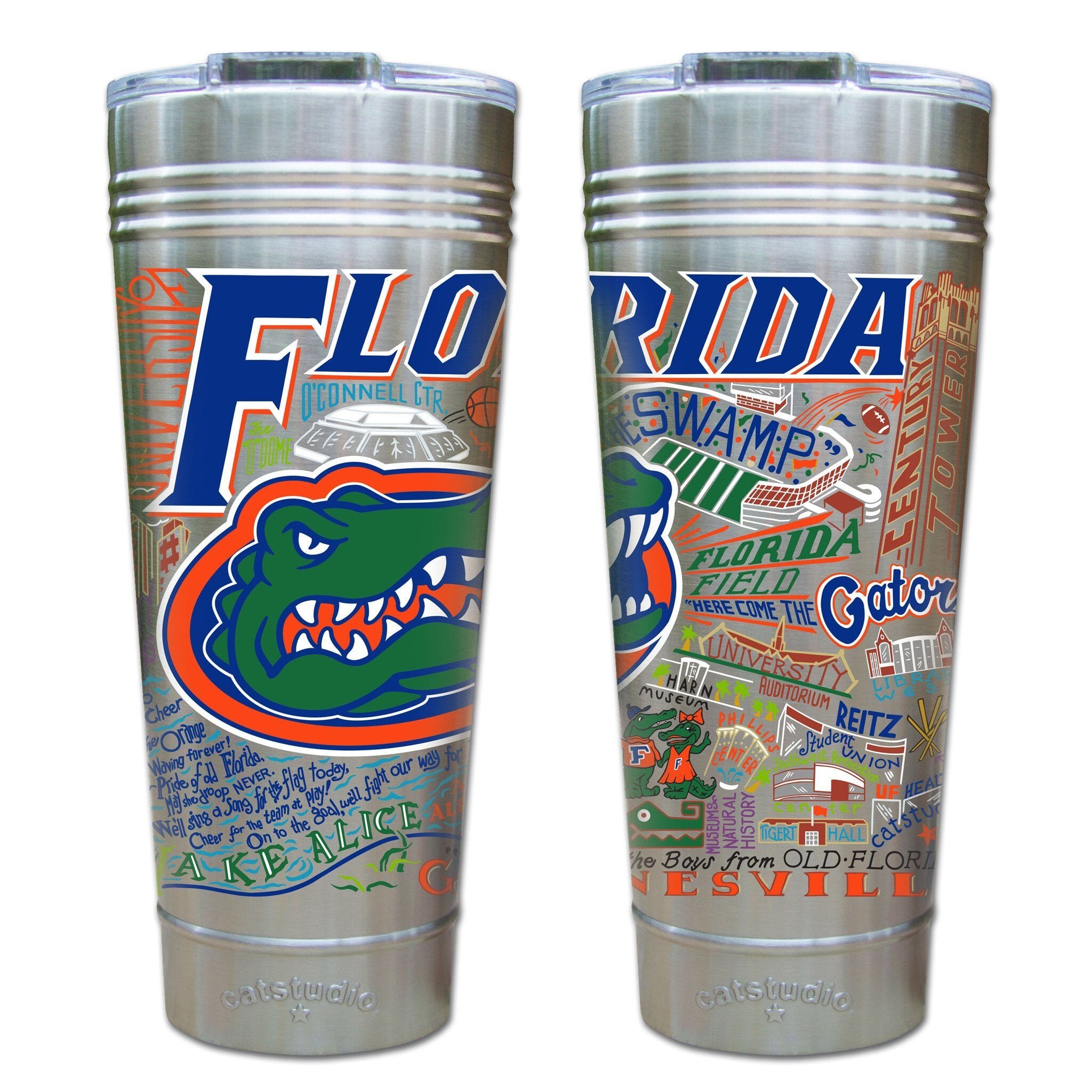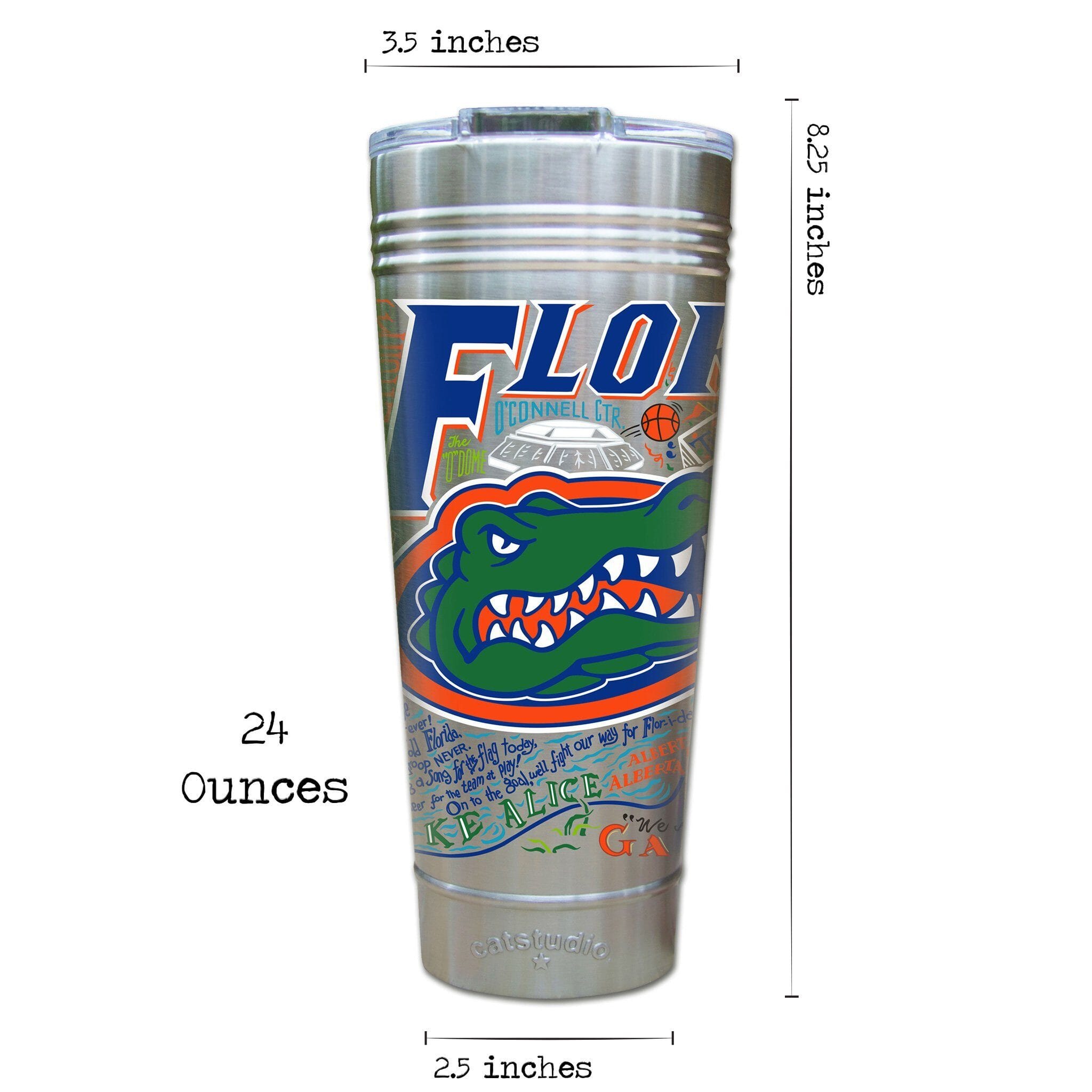 This original design celebrates University of Florida. Go Gators!Our original art is now available to bring along on all your on-the-go adventures. This triple-walled 24 ounce thermal tumbler amazingly keeps beverages HOT for 4 hours and COLD for 6 hours. Add ice for up to 12 hours of cool sipping! Features a thoughtfully-engineered magnetic closure and a non-slip bottom to prevent spills and wet marks on surfaces. Innovation at its finest. Yippee!