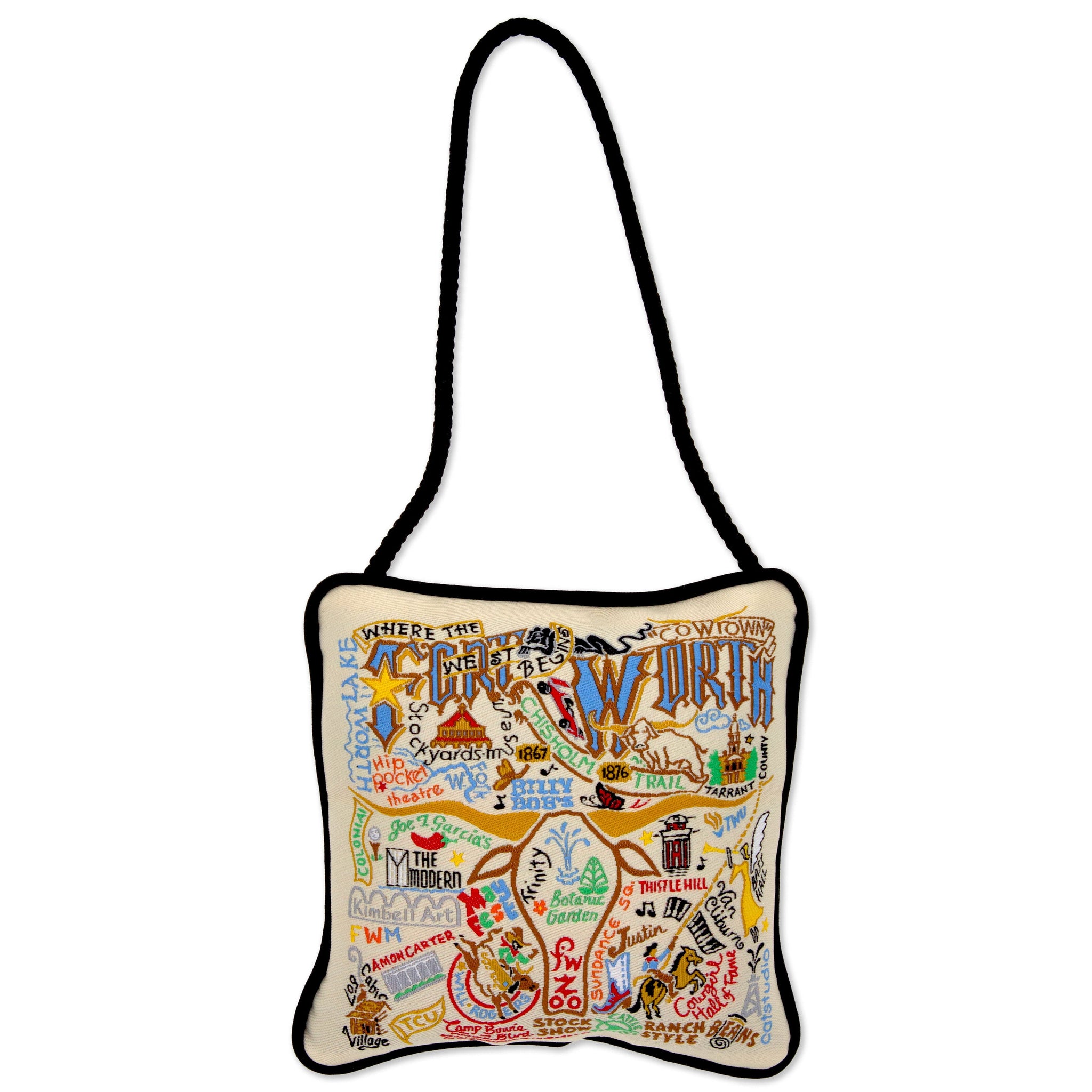 Our original design is uniquely woven (not printed!), then sewn into an adorable, 4-inch miniature pillow ornament. Complete with a cord for hanging from your Christmas tree, doorknob—you name it!