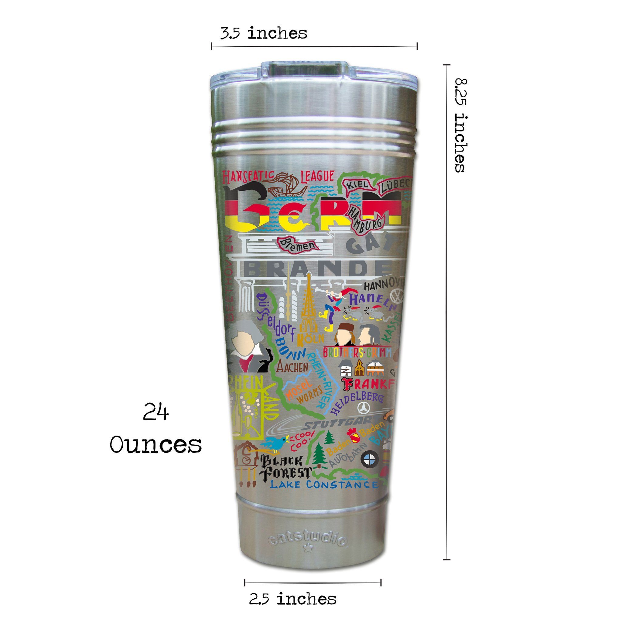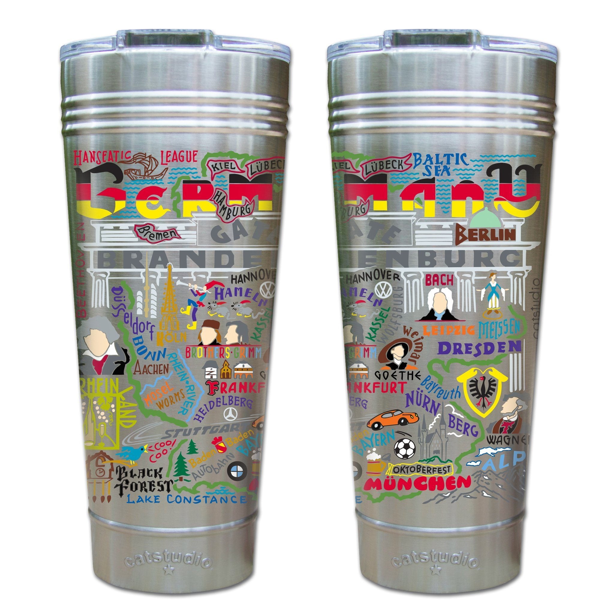 Guten Tag! This original design celebrates Deutschland - Germany.Our original art is now available to bring along on all your on-the-go adventures. This triple-walled 24 ounce thermal tumbler amazingly keeps beverages HOT for 4 hours and COLD for 6 hours. Add ice for up to 12 hours of cool sipping! Features a thoughtfully-engineered magnetic closure and a non-slip bottom to prevent spills and wet marks on surfaces. Innovation at its finest. Yippee!