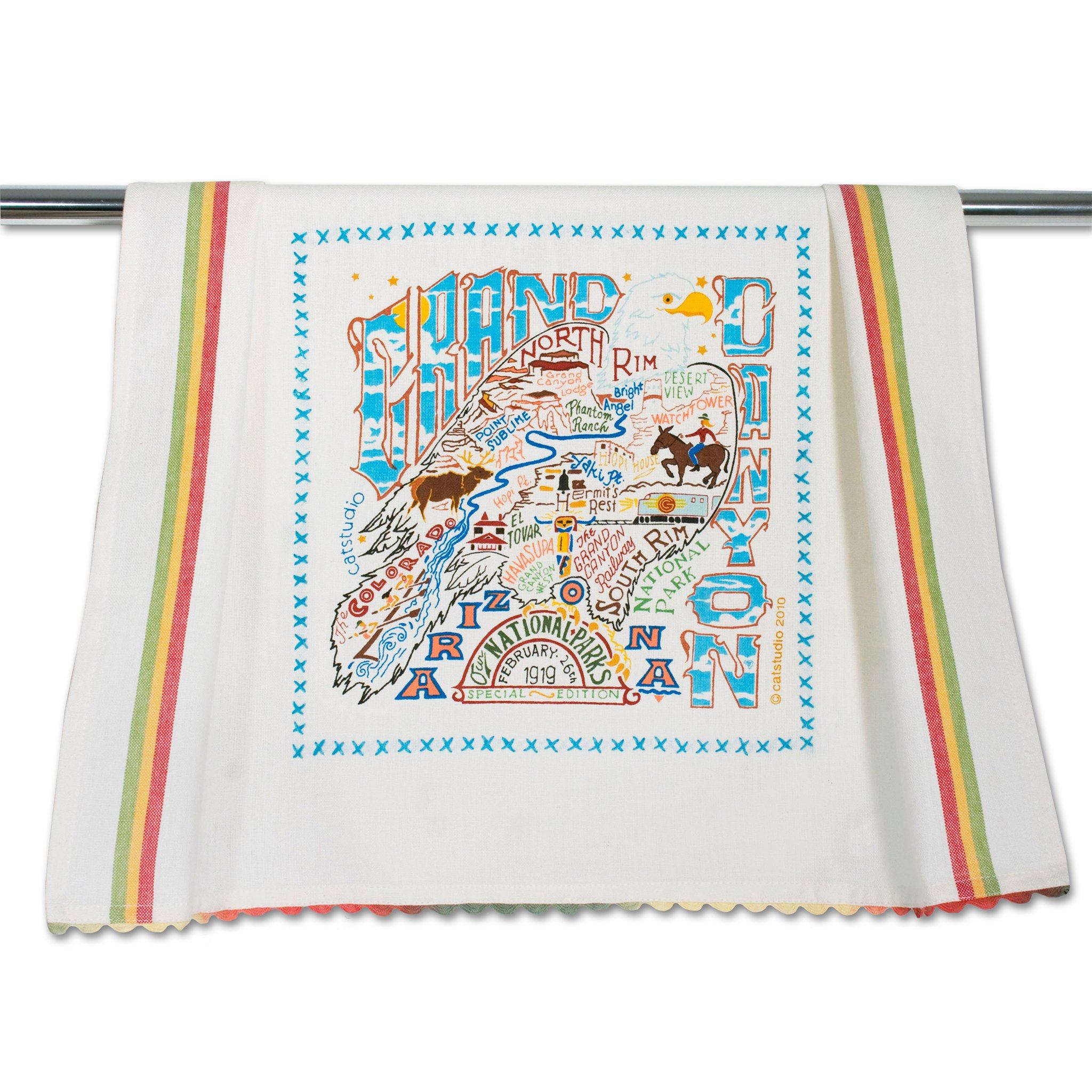 - HAND-WOVEN FABRIC & HAND-CRAFTED TOUCHES: Each dish towel is made from 100% hand-loomed cotton. The design is silk-screened using 12 colors (yes, thats 12 screens!) and then framed with a hand-stitched border and finished with hand-dipped rick rack. Wowzers!
