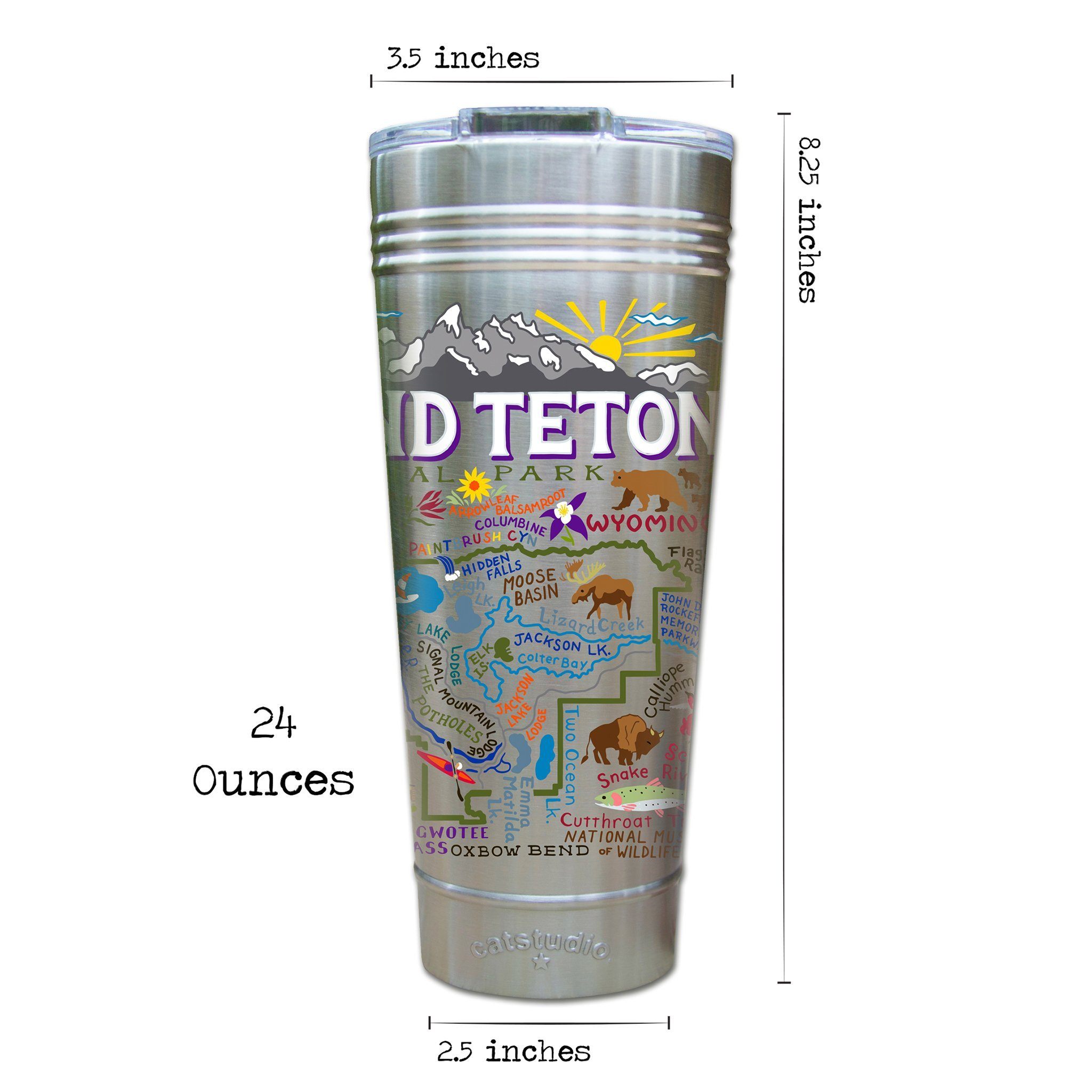 This original design celebrates Grand Teton National Park!Our original art is now available to bring along on all your on-the-go adventures. This triple-walled 24 ounce thermal tumbler amazingly keeps beverages HOT for 4 hours and COLD for 6 hours. Add ice for up to 12 hours of cool sipping! Features a thoughtfully-engineered magnetic closure and a non-slip bottom to prevent spills and wet marks on surfaces. Innovation at its finest. Yippee!