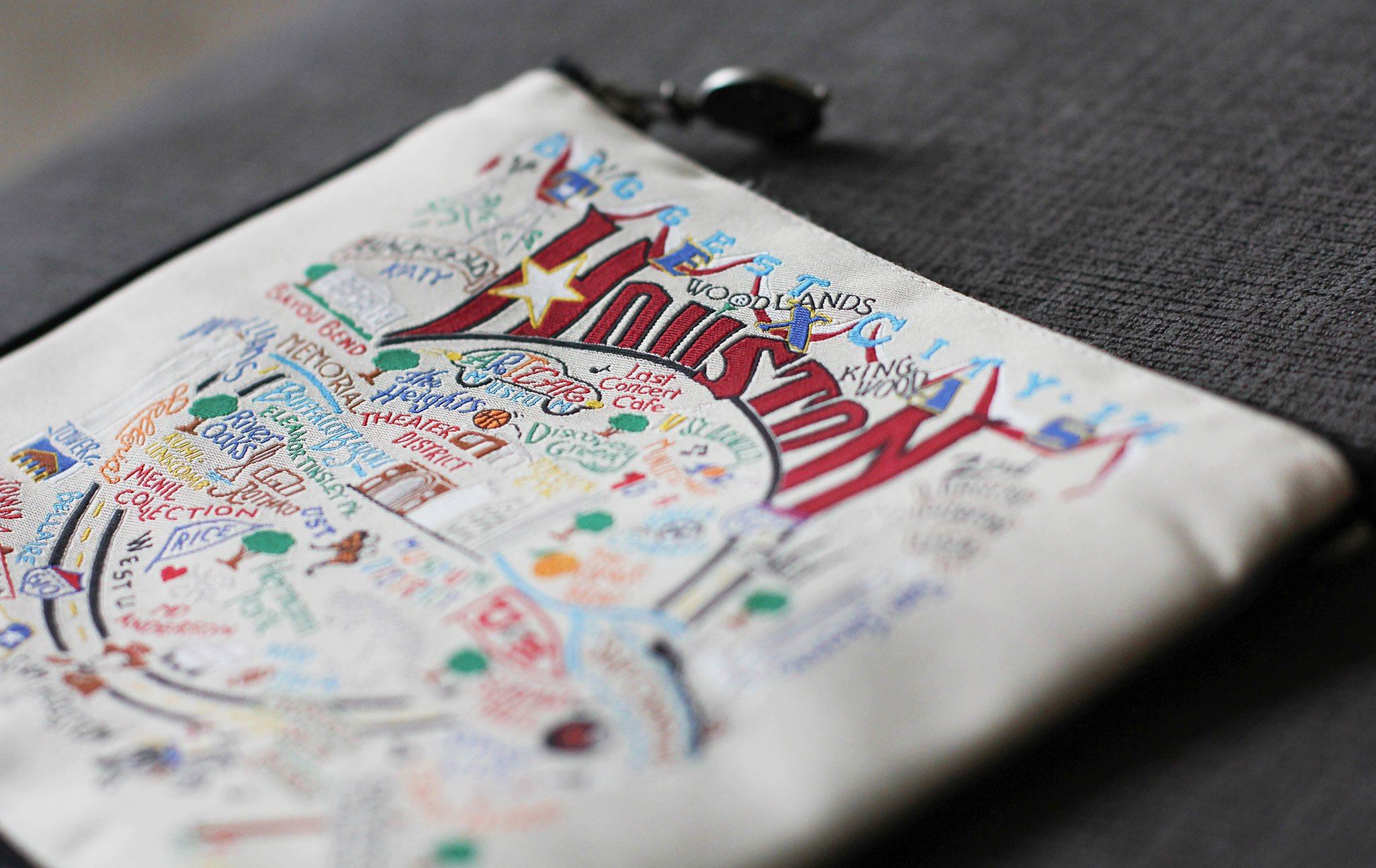 Our original design is uniquely woven (not printed!) into a handy-sized zip pouch - perfect for toting your keys, cash & credit cards, cosmetics - all your small necessities! Complete with chic zipper and pull, and our signature Geo black lining. Conveniently sized at 5x7 inches.