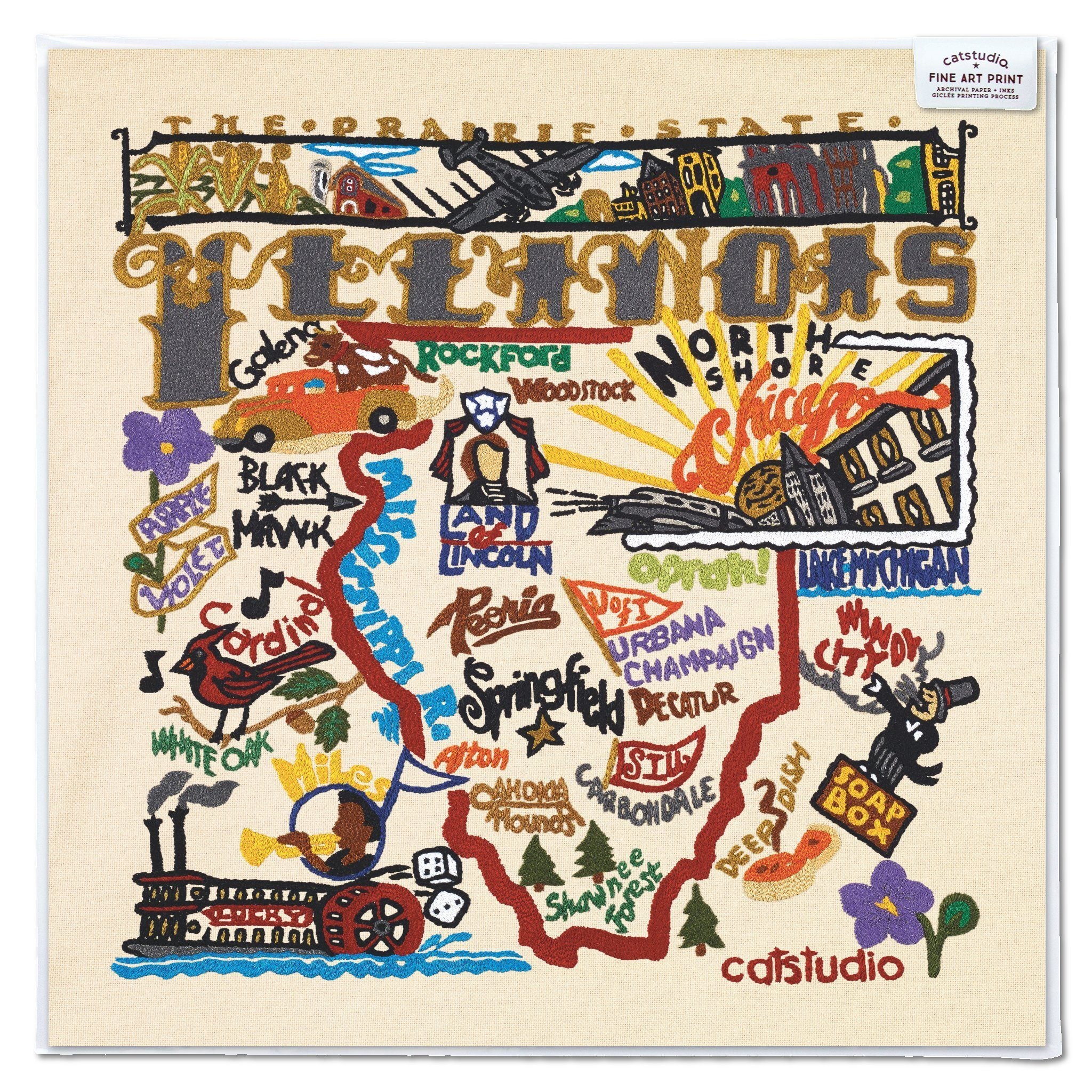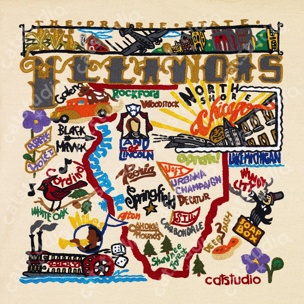 The land of Lincoln. This original design celebrates the state of Illinois, from Cairo to Chicago!