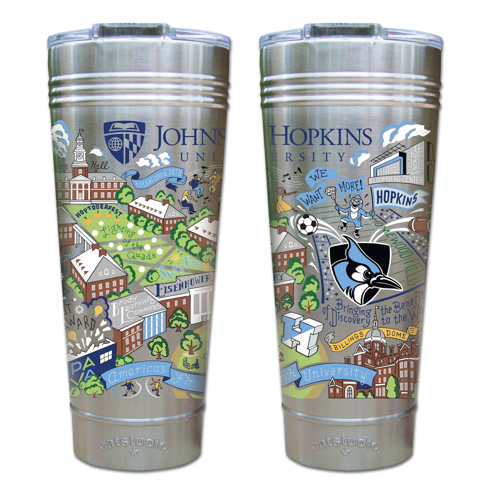 This original design celebrates Johns Hopkins University. Go Blue Jays!