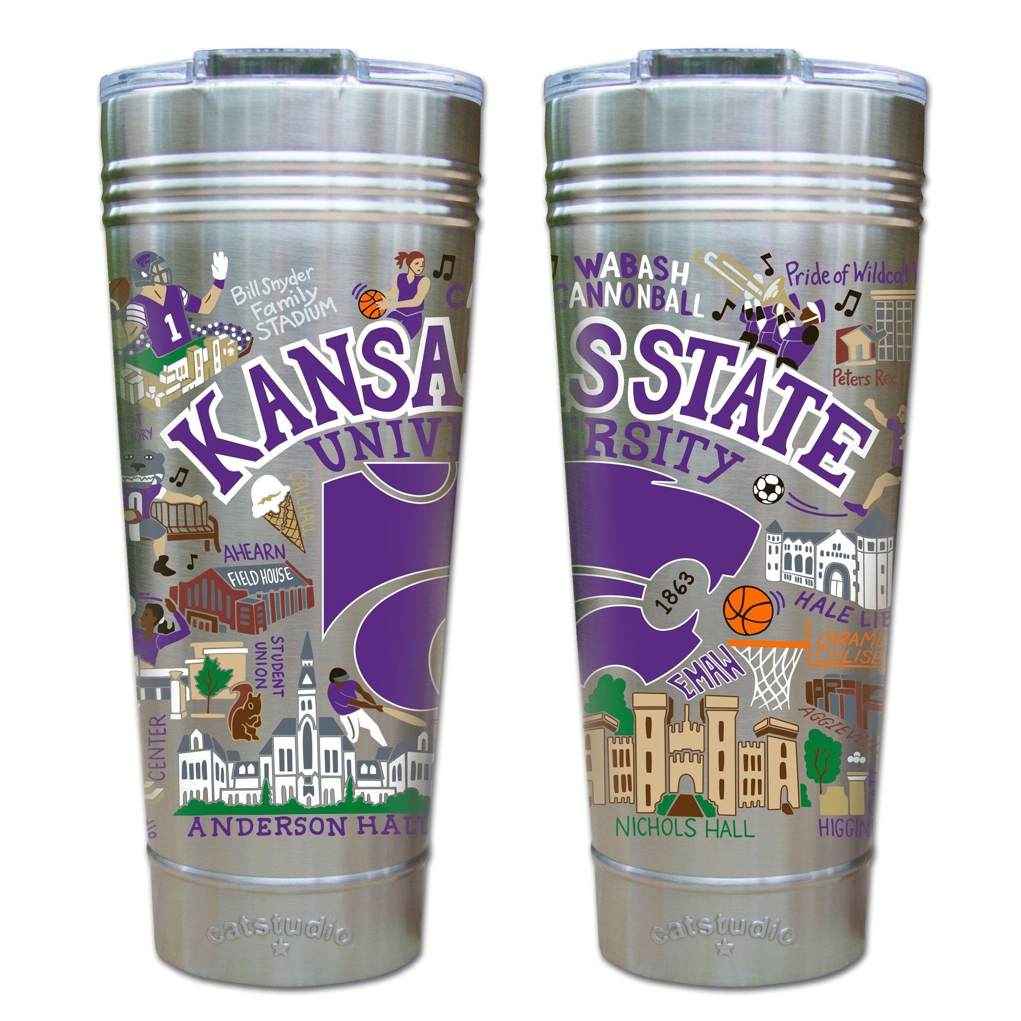 This original design celebrates Kansas State University. Go Wildcats!Our original art is now available to bring along on all your on-the-go adventures. This triple-walled 24 ounce thermal tumbler amazingly keeps beverages HOT for 4 hours and COLD for 6 hours. Add ice for up to 12 hours of cool sipping! Features a thoughtfully-engineered magnetic closure and a non-slip bottom to prevent spills and wet marks on surfaces. Innovation at its finest. Yippee!