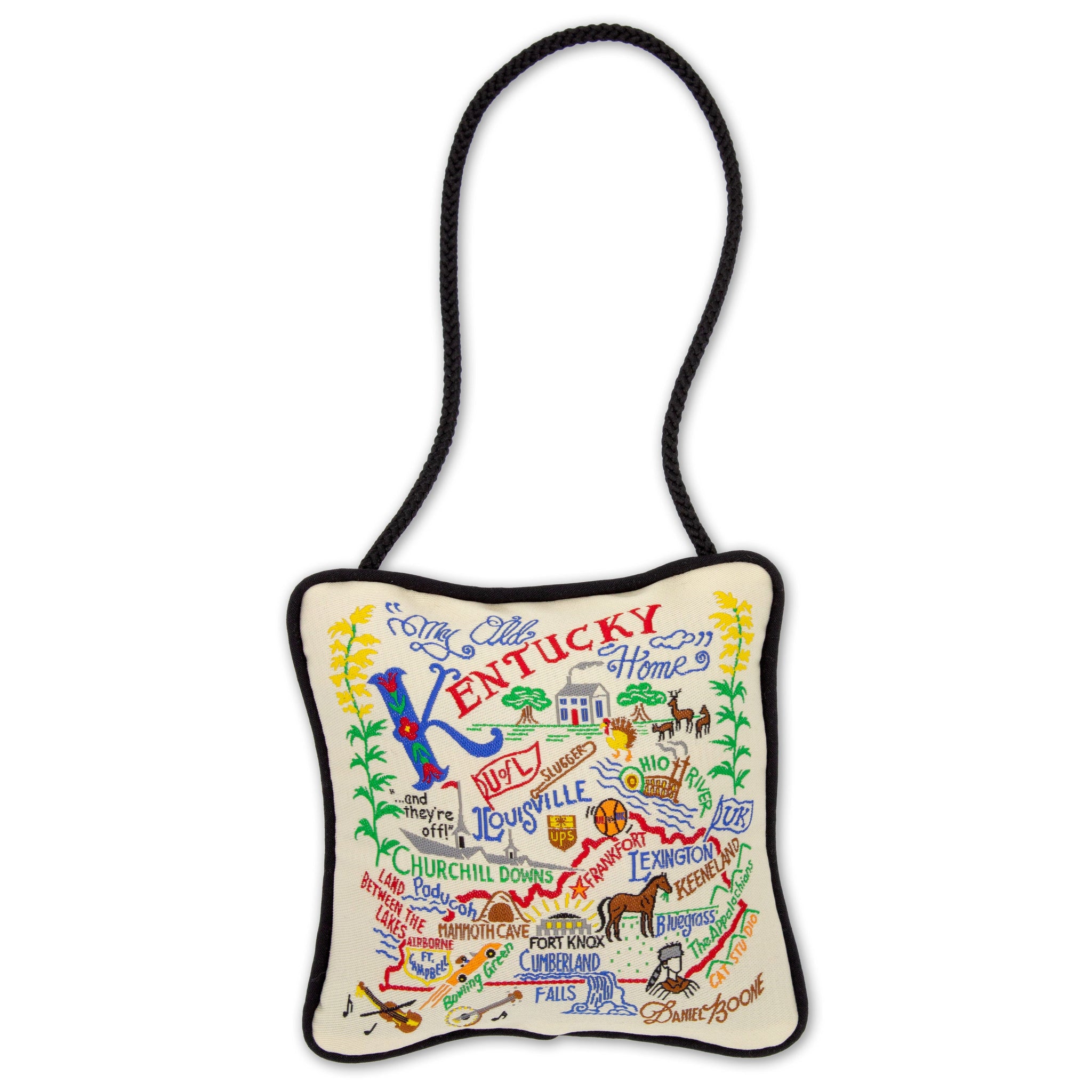 Our original design is uniquely woven (not printed!), then sewn into an adorable, 4-inch miniature pillow ornament. Complete with a cord for hanging from your Christmas tree, doorknob—you name it!