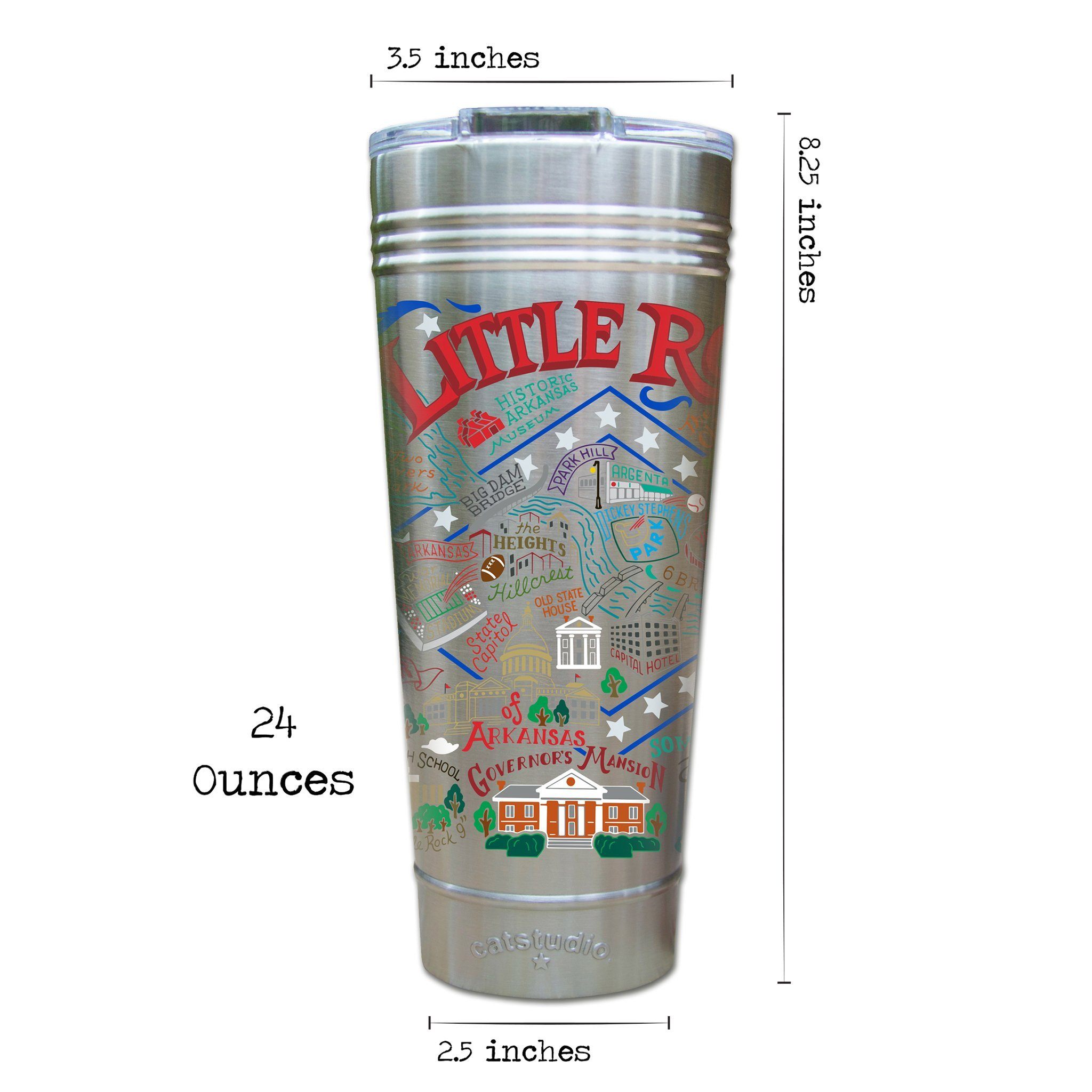 This original design celebrates Little Rock, Arkansas!Our original art is now available to bring along on all your on-the-go adventures. This triple-walled 24 ounce thermal tumbler amazingly keeps beverages HOT for 4 hours and COLD for 6 hours. Add ice for up to 12 hours of cool sipping! Features a thoughtfully-engineered magnetic closure and a non-slip bottom to prevent spills and wet marks on surfaces. Innovation at its finest. Yippee!