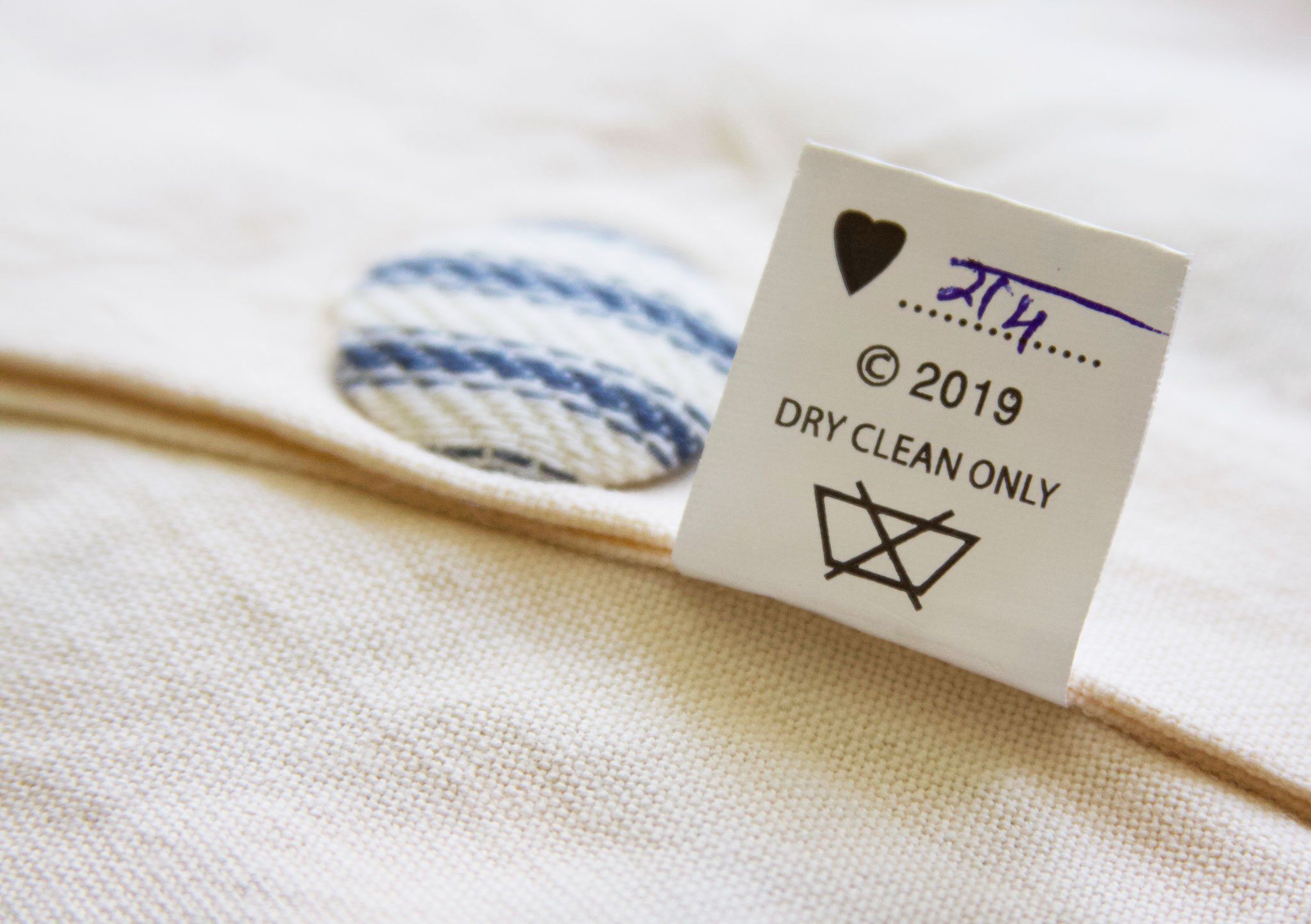 This pillow is entirely EMBROIDERED by HAND on 100% Organic Cotton. Amazingly, it can take up to one week to embroider one pillow! It is also unique in nature since each artisan incorporates a certain flair to their work, and every piece is signed on the tag. Created on tea-colored background, accented with blue ticking piping, and finished with a 3-button closure. 18 x 24 inches.