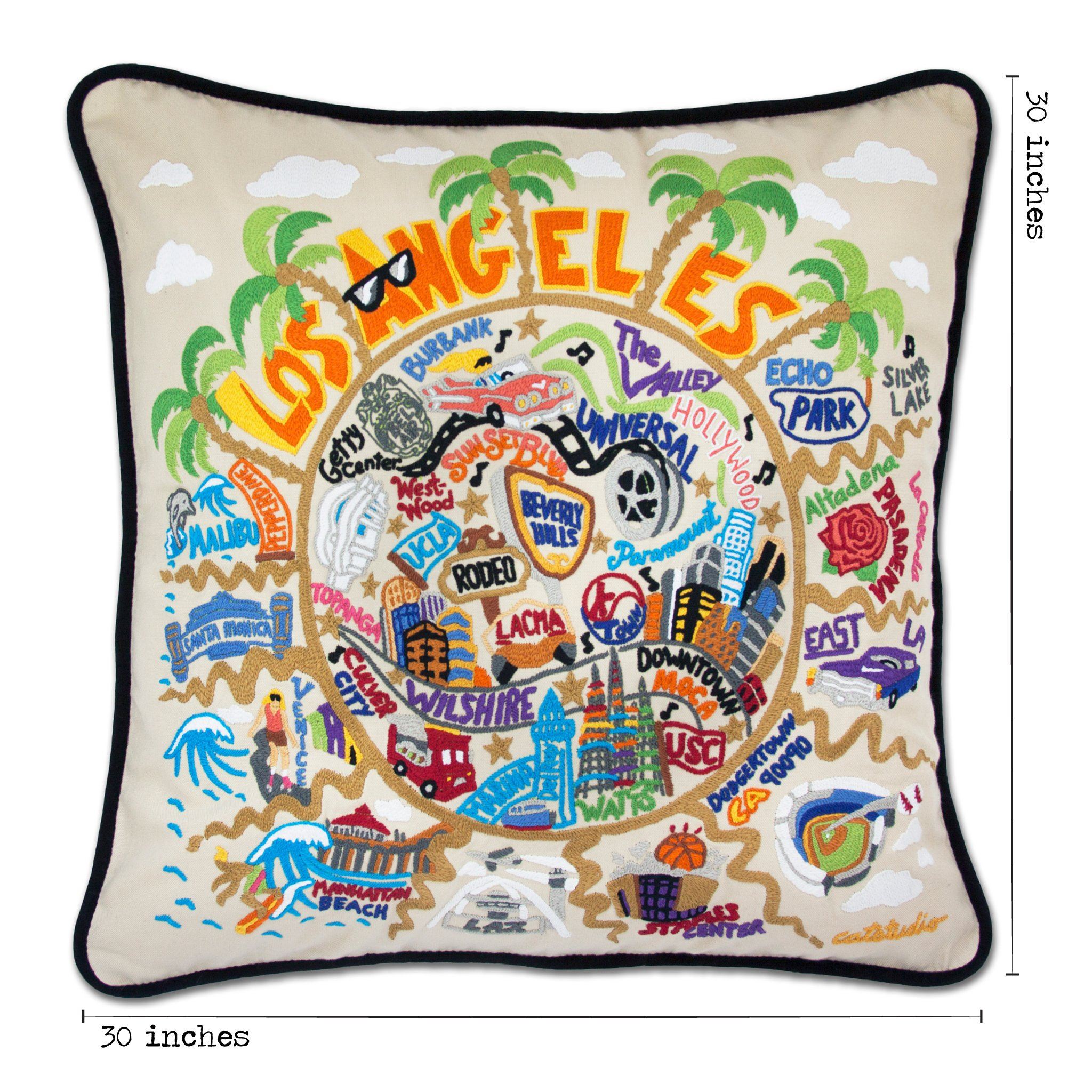 This extra large, extra special pillow is entirely EMBROIDERED by HAND on 100% organic cotton. Amazingly, it can take our skilled artisans 160+ hours to embroider just one of these incredible pillows! It is also unique in nature since each artisan incorporates a certain flair to their work, and every piece is signed on the tag. Created on tea-colored background, accented with black velvet piping, and finished with a 5-button closure. 30x30 inches.P.S. Our XL pillows can be custom ordered in ANY of our geography or collegiate designs! Please allow 4 months for manufacturing and shipping. For more information and to place an XL pillow order click here. Not available for expedited shipping.