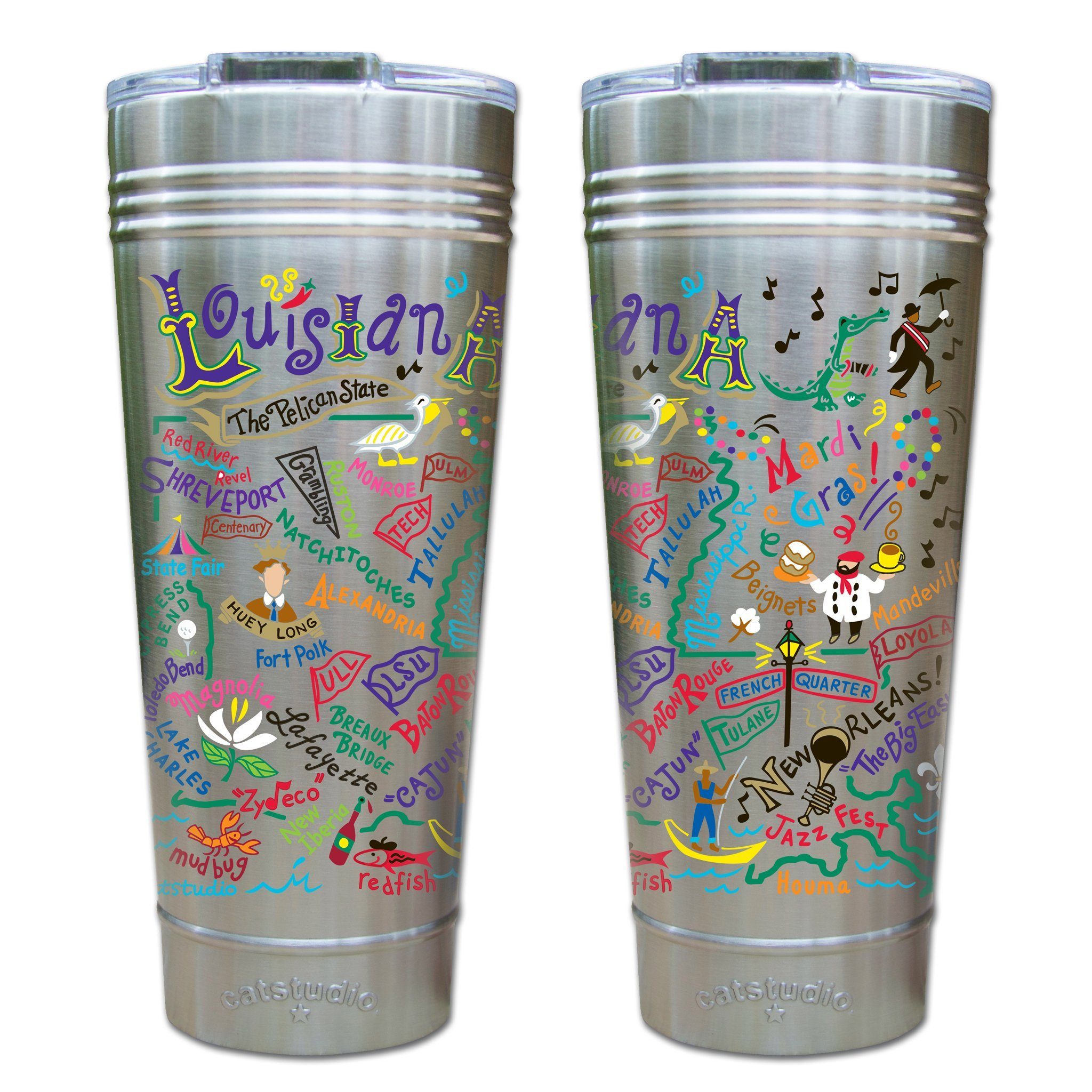 Louisiana - it's like a separate country - but it is a state. This original design celebrates this amazing state from Lake Charles to Monroe to Tallulah to the Crescent City!!!Our original art is now available to bring along on all your on-the-go adventures. This triple-walled 24 ounce thermal tumbler amazingly keeps beverages HOT for 4 hours and COLD for 6 hours. Add ice for up to 12 hours of cool sipping! Features a thoughtfully-engineered magnetic closure and a non-slip bottom to prevent spills and wet marks on surfaces. Innovation at its finest. Yippee!