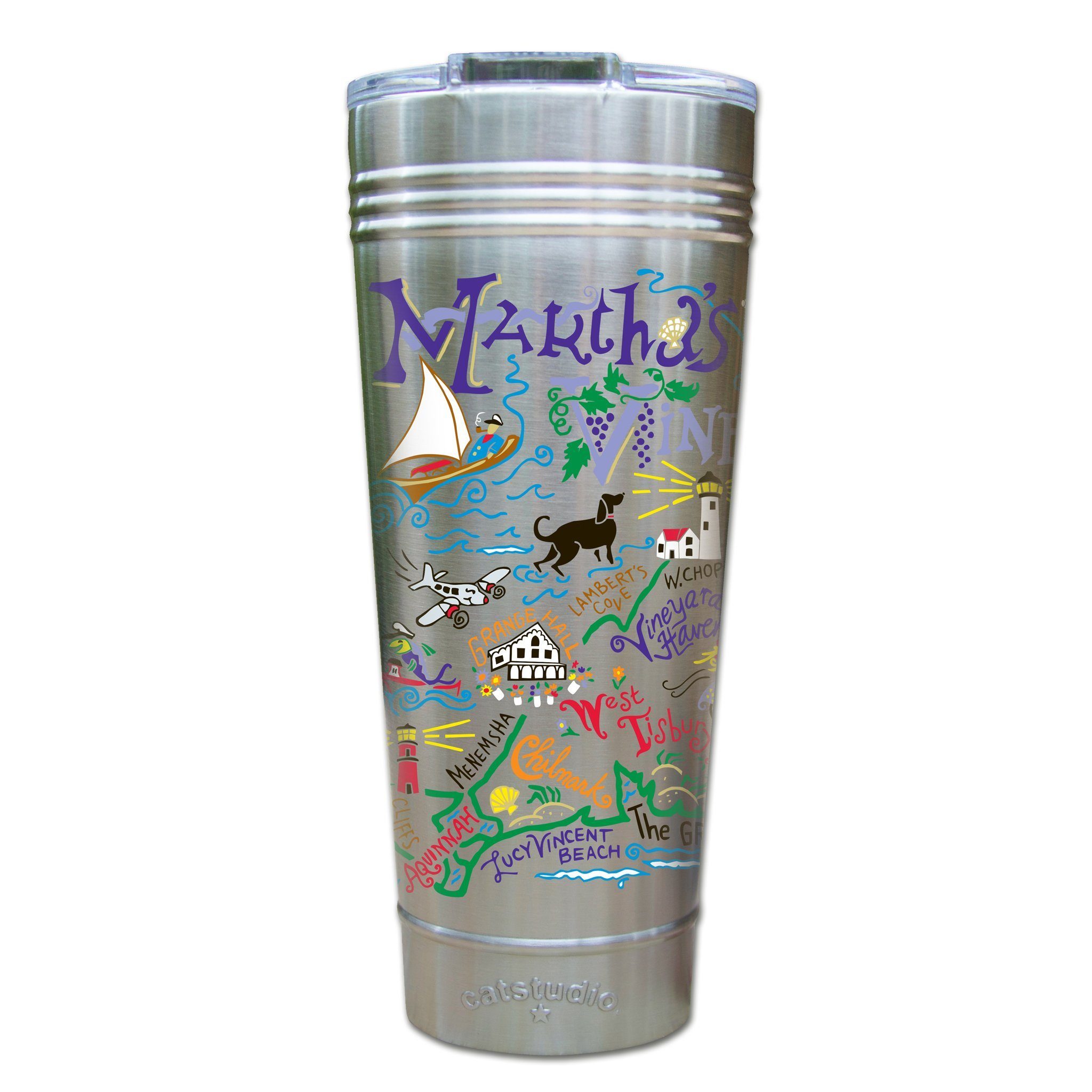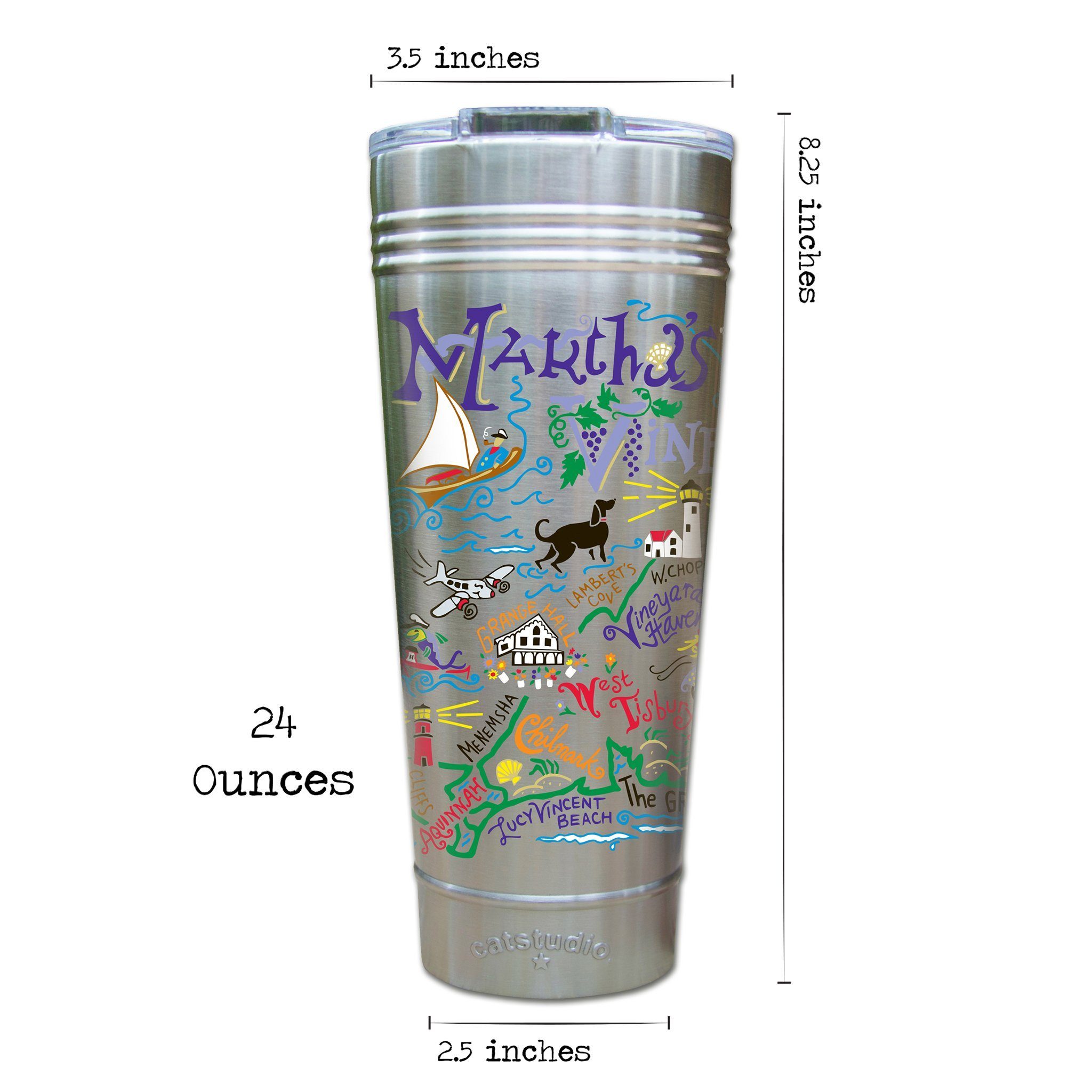From Cape Poge to the Cliffs - this original design celebrates Martha's Vineyard in exquisite detail.Our original art is now available to bring along on all your on-the-go adventures. This triple-walled 24 ounce thermal tumbler amazingly keeps beverages HOT for 4 hours and COLD for 6 hours. Add ice for up to 12 hours of cool sipping! Features a thoughtfully-engineered magnetic closure and a non-slip bottom to prevent spills and wet marks on surfaces. Innovation at its finest. Yippee!