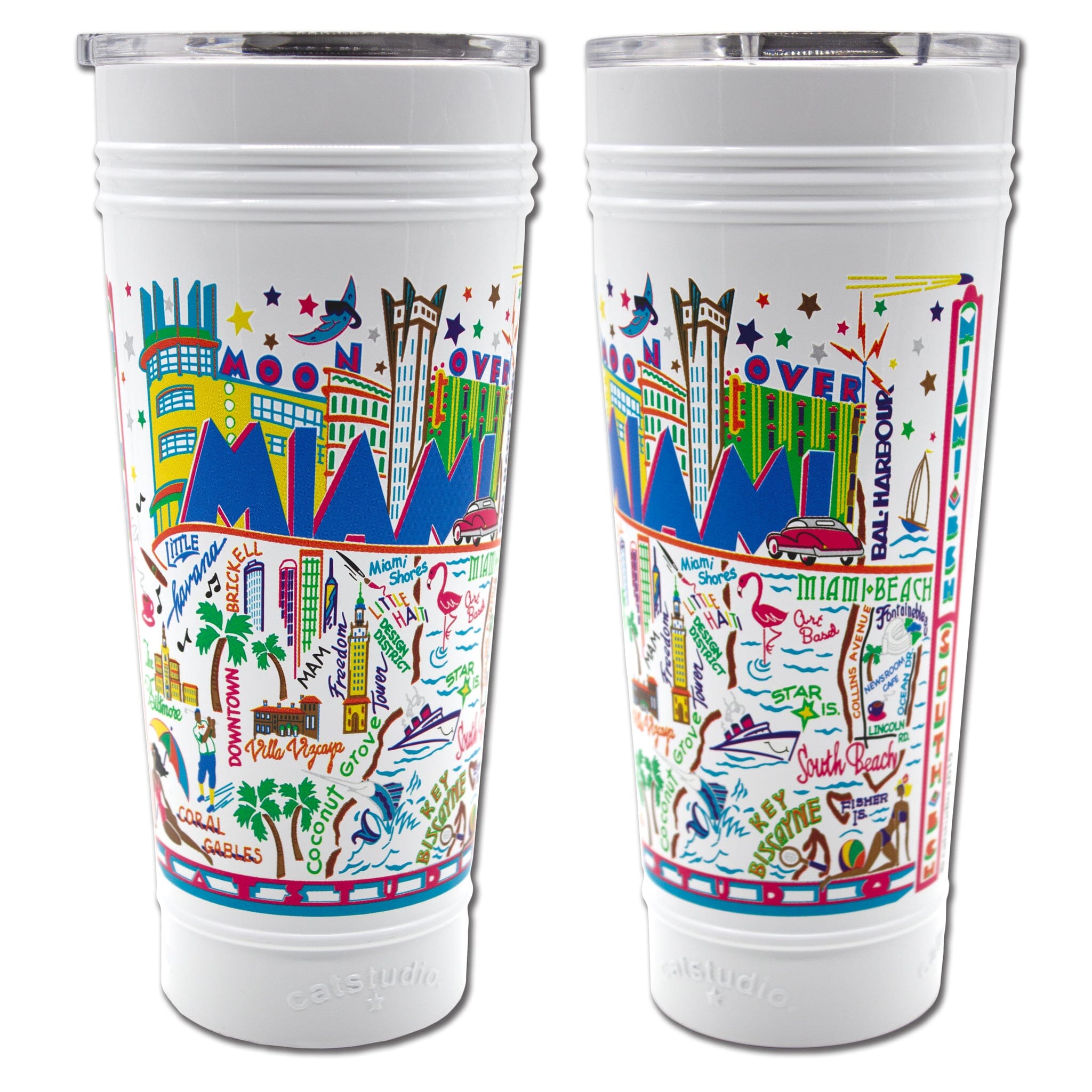 The Magic City! This original design celebrates the City of Miami, Florida.Our original art is now available to bring along on all your on-the-go adventures. This triple-walled 24 ounce thermal tumbler amazingly keeps beverages HOT for 4 hours and COLD for 6 hours. Add ice for up to 12 hours of cool sipping! Features a thoughtfully-engineered magnetic closure and a non-slip bottom to prevent spills and wet marks on surfaces. Innovation at its finest. Yippee!