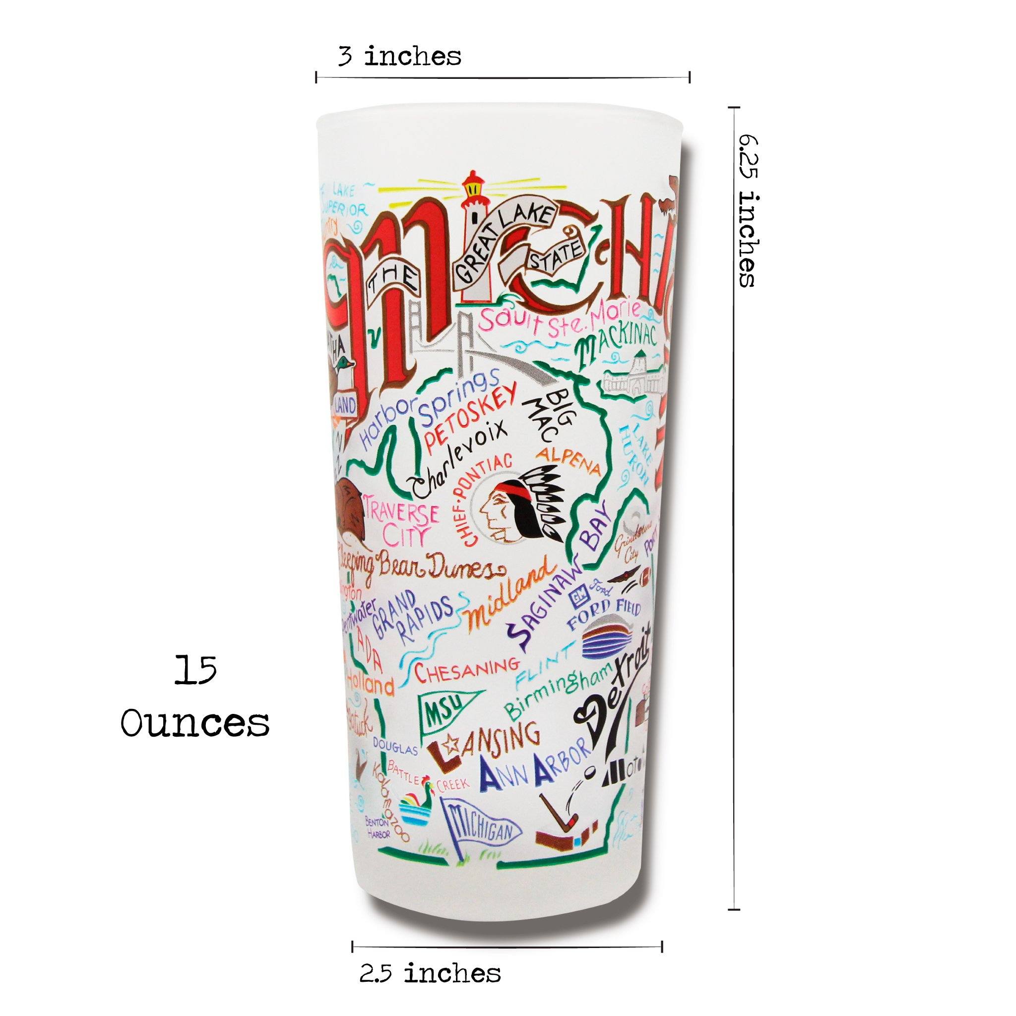 Our original design is amazingly rendered using organic inks of unlimited vibrant colors plus silver and gold. The high quality 15-ounce frosted glass is dishwasher safe. Cheers and bottoms up!