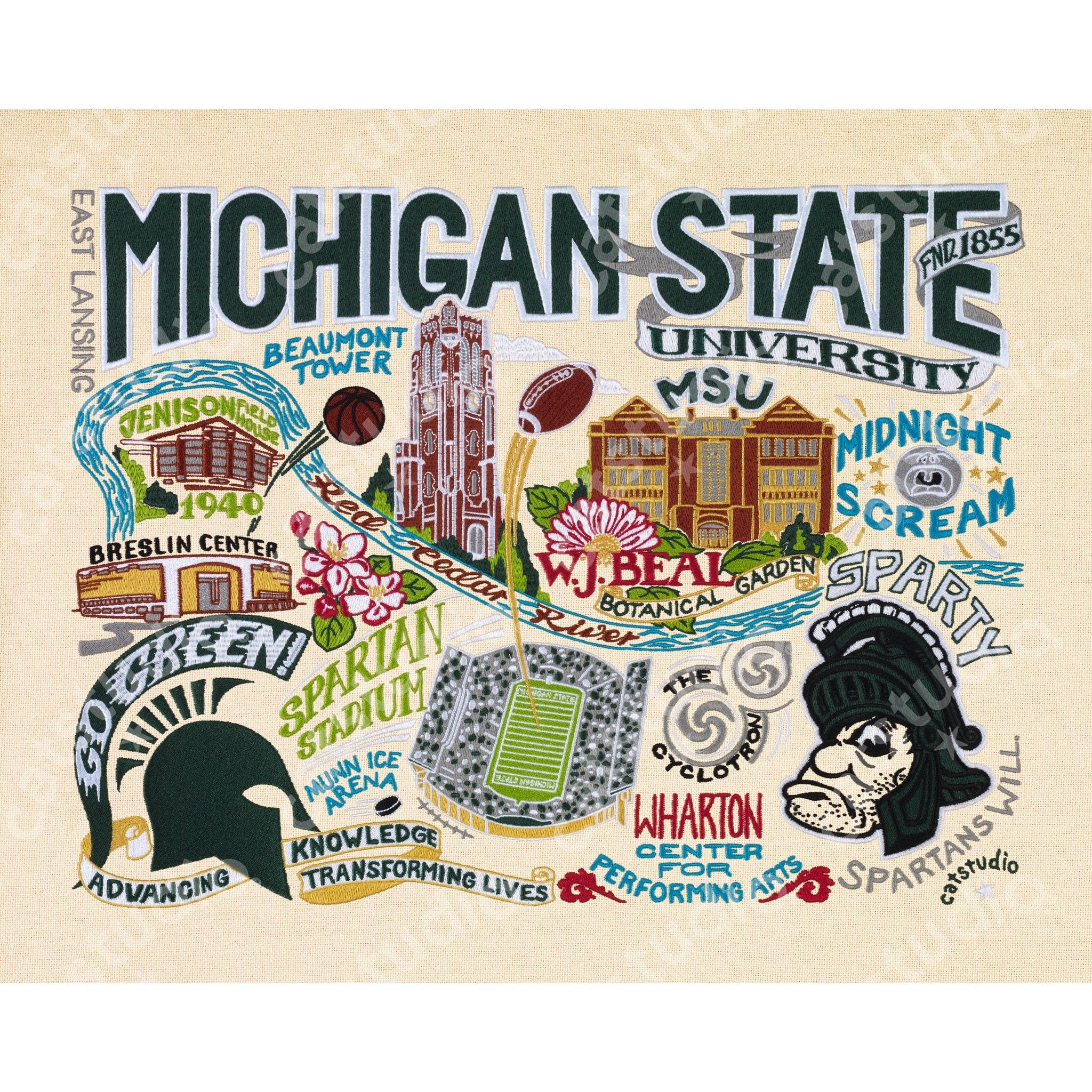 This original design celebrates the Michigan State University. Go Green! Spartans Will.