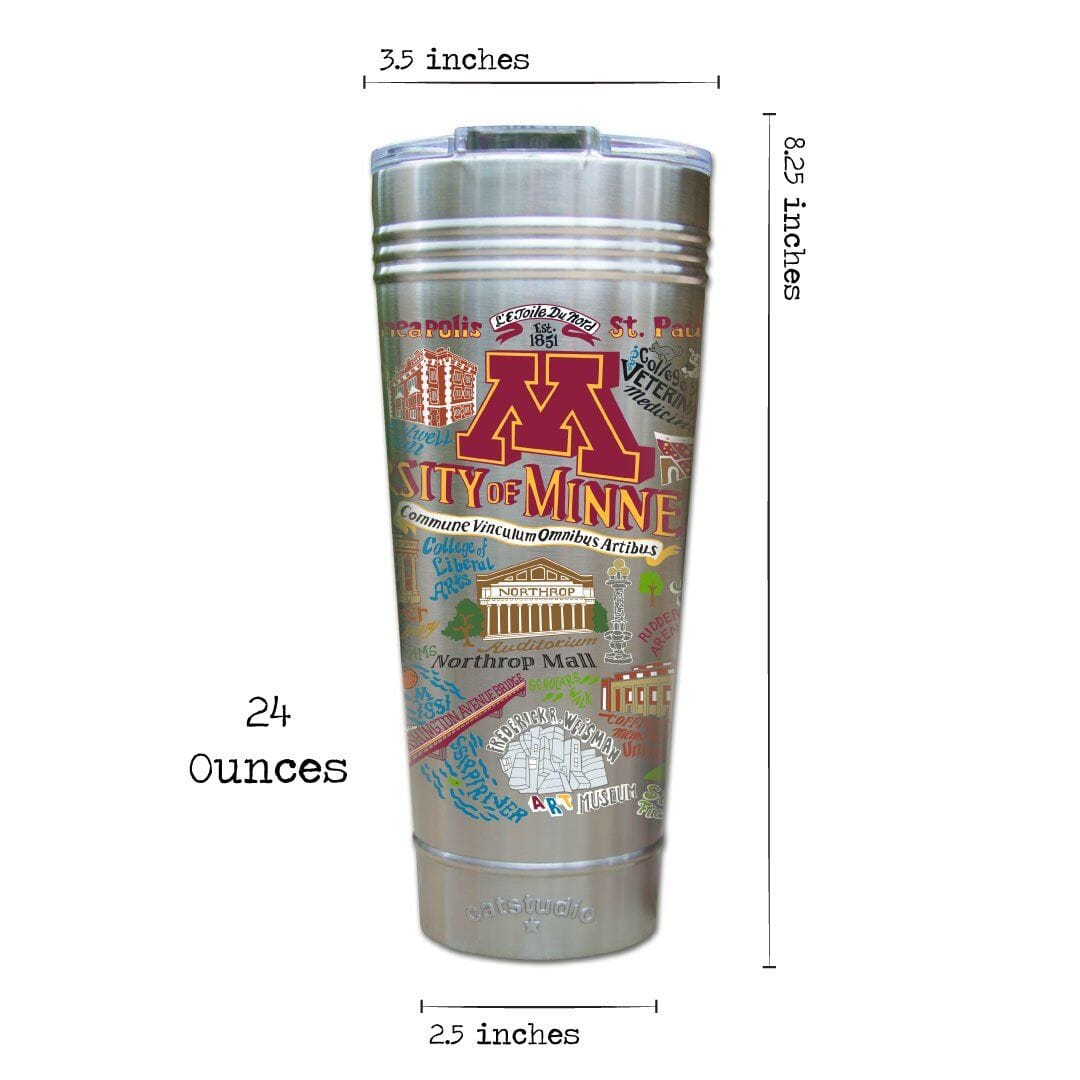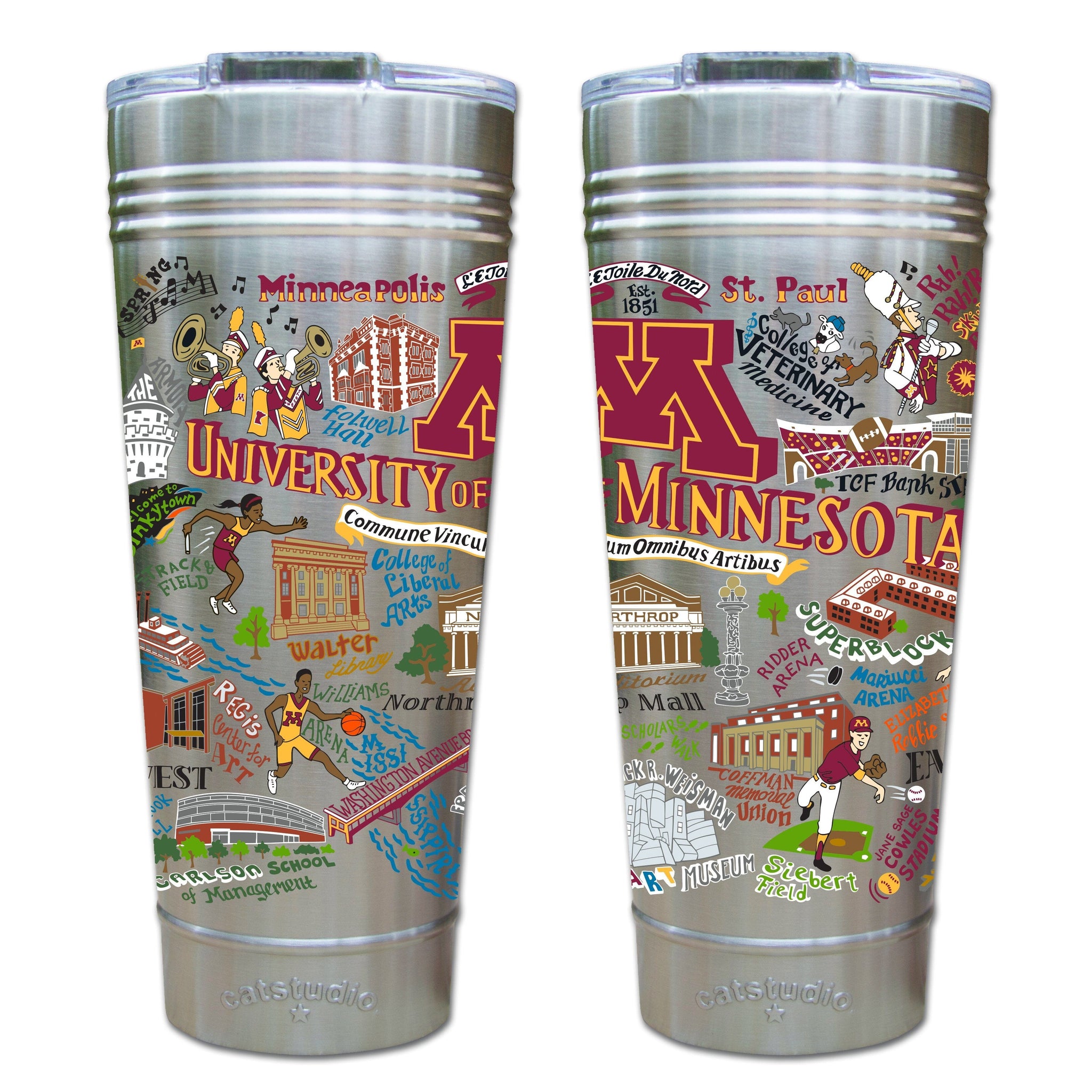 This original design celebrates the University of Minnesota. Go Golden Gophers!Our original art is now available to bring along on all your on-the-go adventures. This triple-walled 24 ounce thermal tumbler amazingly keeps beverages HOT for 4 hours and COLD for 6 hours. Add ice for up to 12 hours of cool sipping! Features a thoughtfully-engineered magnetic closure and a non-slip bottom to prevent spills and wet marks on surfaces. Innovation at its finest. Yippee!
