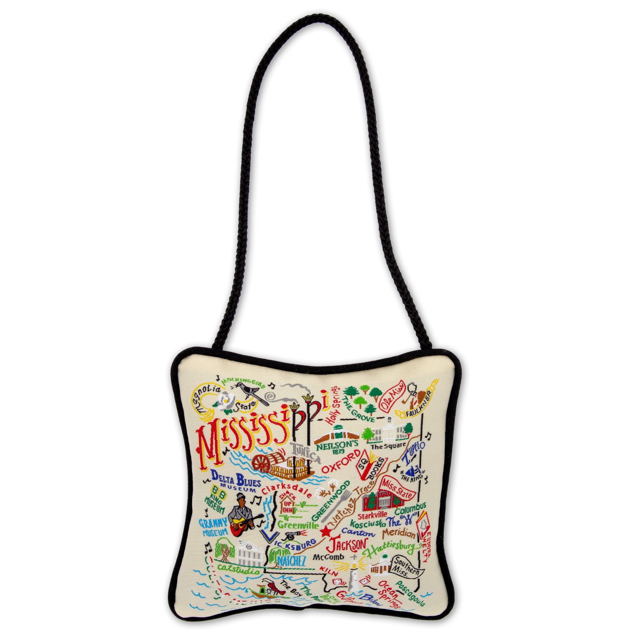 Our original design is uniquely woven (not printed!), then sewn into an adorable, 4-inch miniature pillow ornament. Complete with a cord for hanging from your Christmas tree, doorknob—you name it!