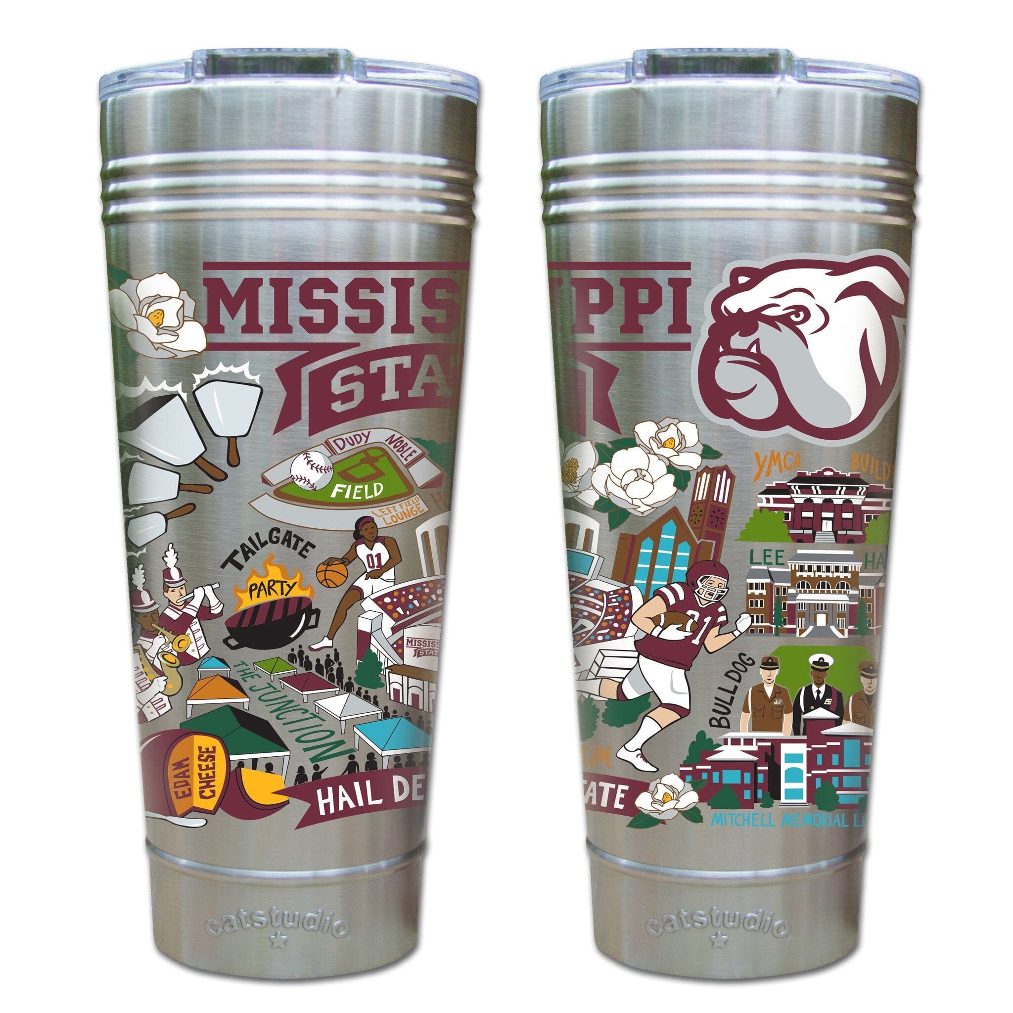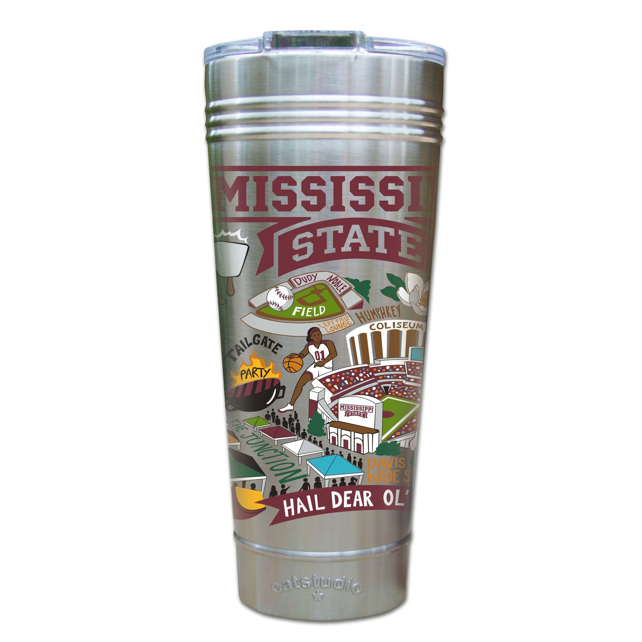 This original design celebrates Mississippi State University. Hail State!Our original art is now available to bring along on all your on-the-go adventures. This triple-walled 24 ounce thermal tumbler amazingly keeps beverages HOT for 4 hours and COLD for 6 hours. Add ice for up to 12 hours of cool sipping! Features a thoughtfully-engineered magnetic closure and a non-slip bottom to prevent spills and wet marks on surfaces. Innovation at its finest. Yippee!