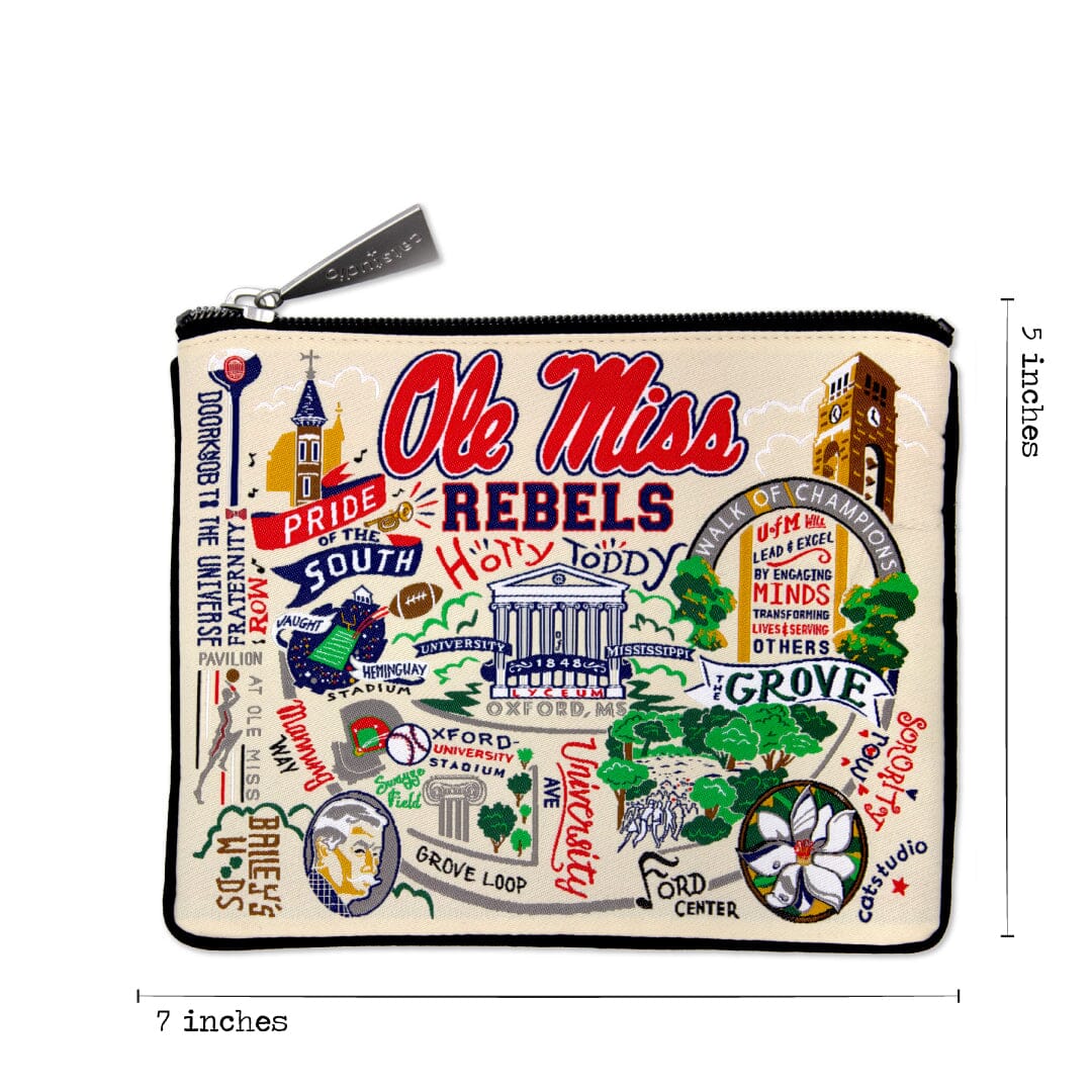 Our original design is uniquely woven (not printed!) into a handy-sized zip pouch - perfect for toting your keys, cash & credit cards, cosmetics - all your small necessities! Complete with chic zipper and pull, and our signature Collegiate black lining. Conveniently sized at 5x7 inches.