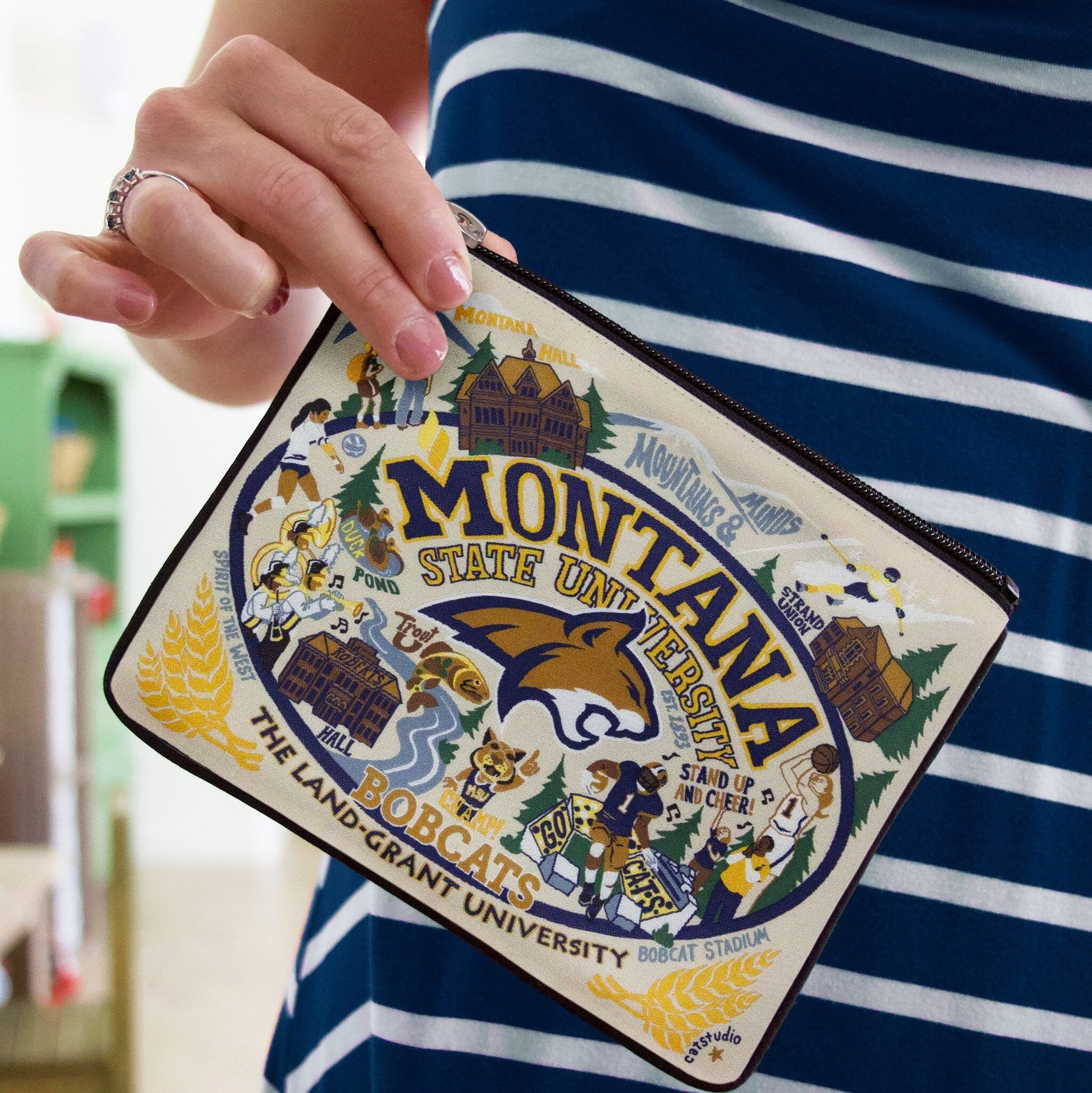 Our original design is uniquely woven (not printed!) into a handy-sized zip pouch - perfect for toting your keys, cash & credit cards, cosmetics - all your small necessities! Complete with chic zipper and pull, and our signature Collegiate black lining. Conveniently sized at 5x7 inches.