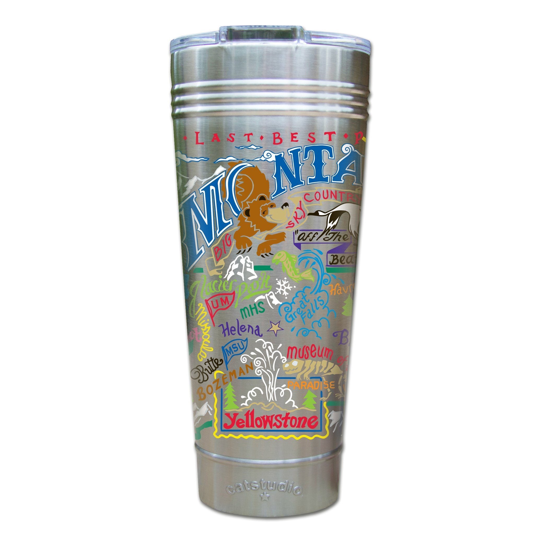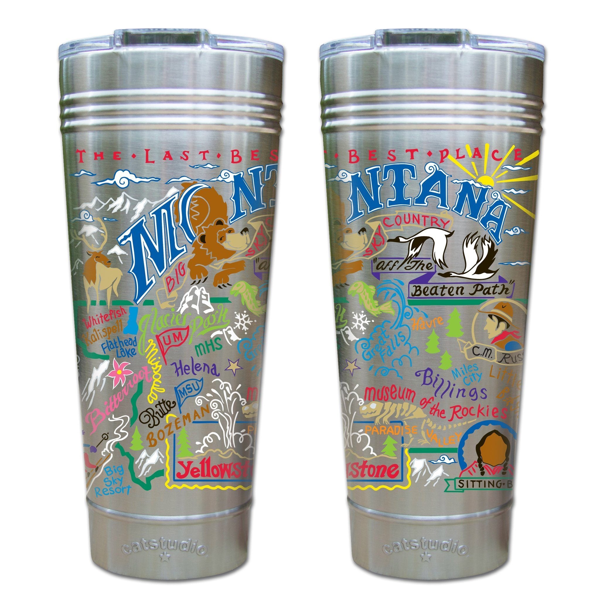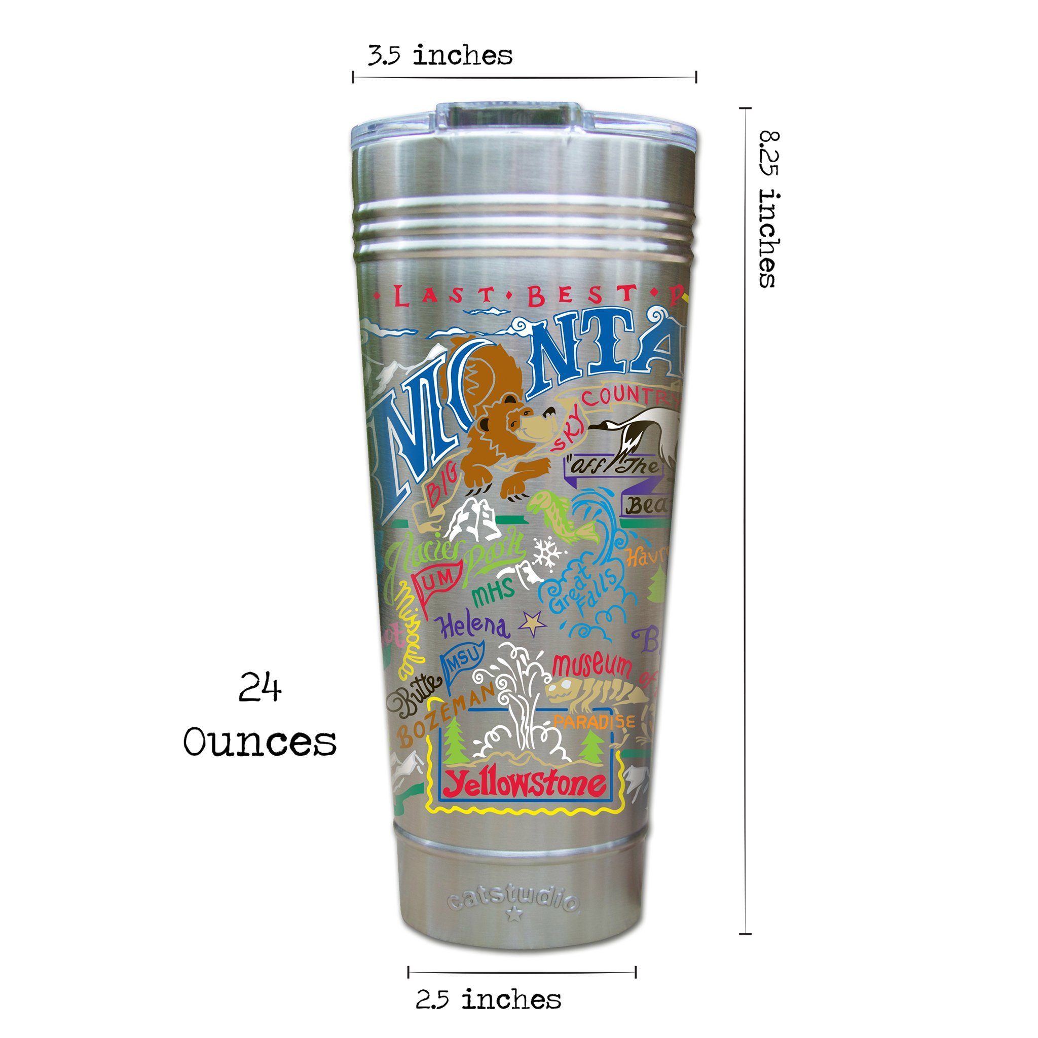They don't call it THE LAST BEST PLACE for nothing! This original design celebrates the State of Montana - from Bozeman, Billings, Big Mountain - BIG SKY COUNTRY and totally Beautiful!!!Our original art is now available to bring along on all your on-the-go adventures. This triple-walled 24 ounce thermal tumbler amazingly keeps beverages HOT for 4 hours and COLD for 6 hours. Add ice for up to 12 hours of cool sipping! Features a thoughtfully-engineered magnetic closure and a non-slip bottom to prevent spills and wet marks on surfaces. Innovation at its finest. Yippee!