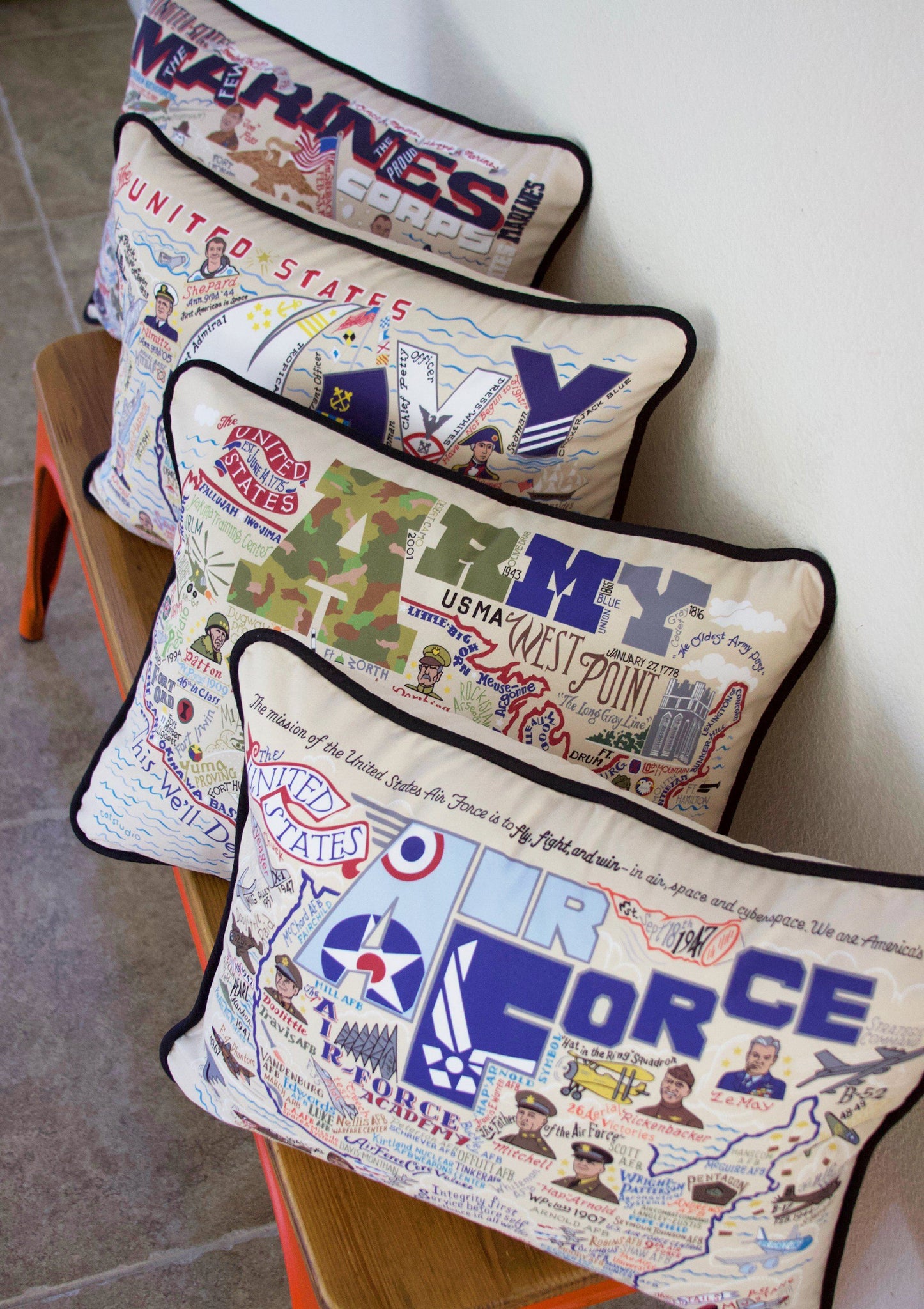 Read more about the Inspiration behind our Military Collection of Pillows, Dish Towels, Glasses, Thermal Bottles, and more.