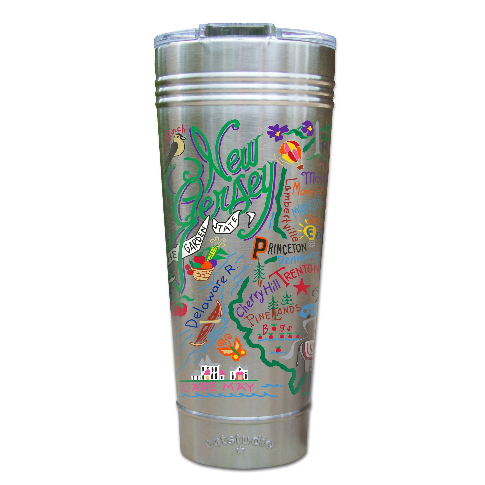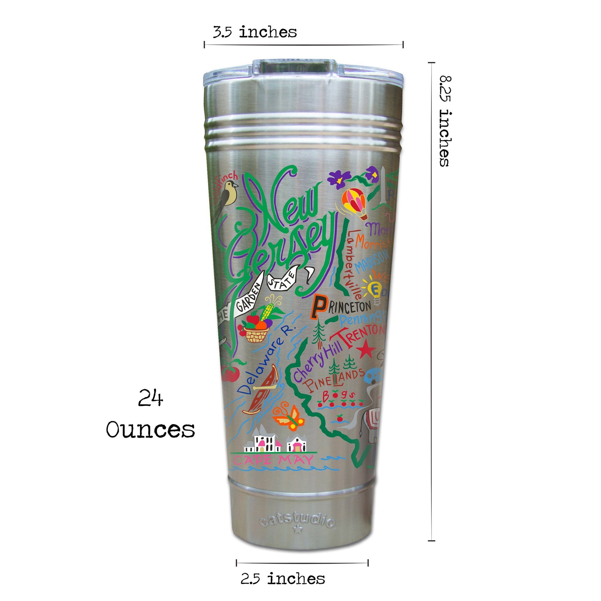 The Garden State. Very few know the whole beauty of New Jersey. This original design celebrates the beauty from Cape May to the Delaware Gap to Princeton to Hoboken to the 5 story tall Lucy the Elephant!!!Our original art is now available to bring along on all your on-the-go adventures. This triple-walled 24 ounce thermal tumbler amazingly keeps beverages HOT for 4 hours and COLD for 6 hours. Add ice for up to 12 hours of cool sipping! Features a thoughtfully-engineered magnetic closure and a non-slip bottom to prevent spills and wet marks on surfaces. Innovation at its finest. Yippee!