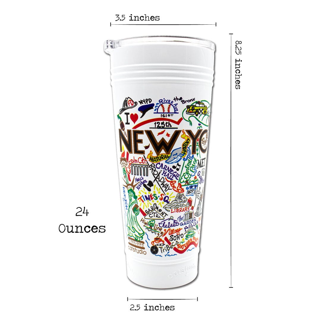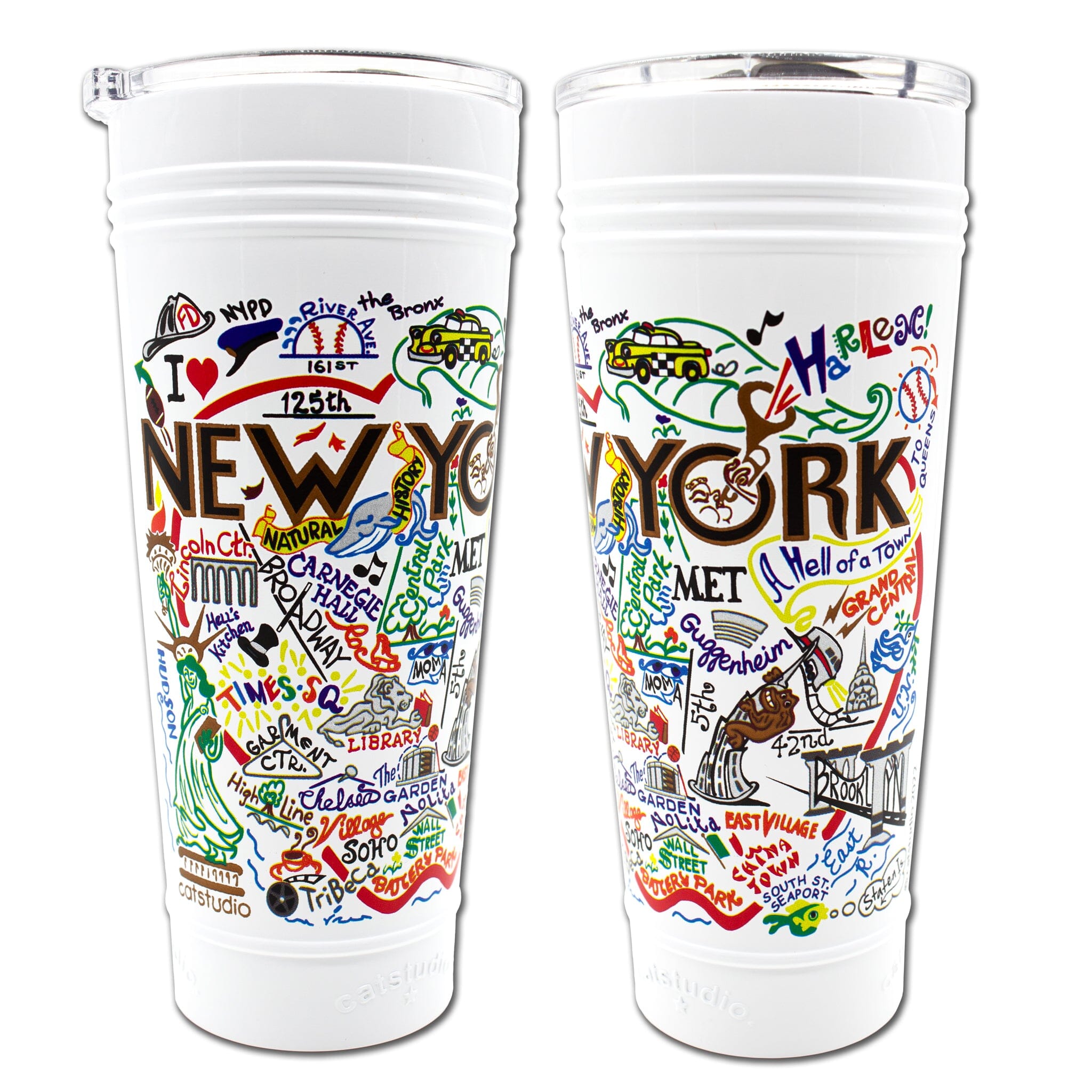 Our homage to the BIG APPLE! The amazing city they had to name twice -New York, New York. The original design celebrates Little Italy, the Garment district, Chelsea, SoHo, Nolita, Harlem, etc...!Our original art is now available to bring along on all your on-the-go adventures. This triple-walled 24 ounce thermal tumbler amazingly keeps beverages HOT for 4 hours and COLD for 6 hours. Add ice for up to 12 hours of cool sipping! Features a thoughtfully-engineered magnetic closure and a non-slip bottom to prevent spills and wet marks on surfaces. Innovation at its finest. Yippee!