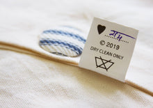 This pillow is entirely EMBROIDERED by HAND on 100% Organic Cotton. Amazingly, it can take up to one week to embroider one pillow! It is also unique in nature since each artisan incorporates a certain flair to their work, and every piece is signed on the tag. Created on tea-colored background, accented with blue ticking piping, and finished with a 3-button closure. 20 x 20 inches.