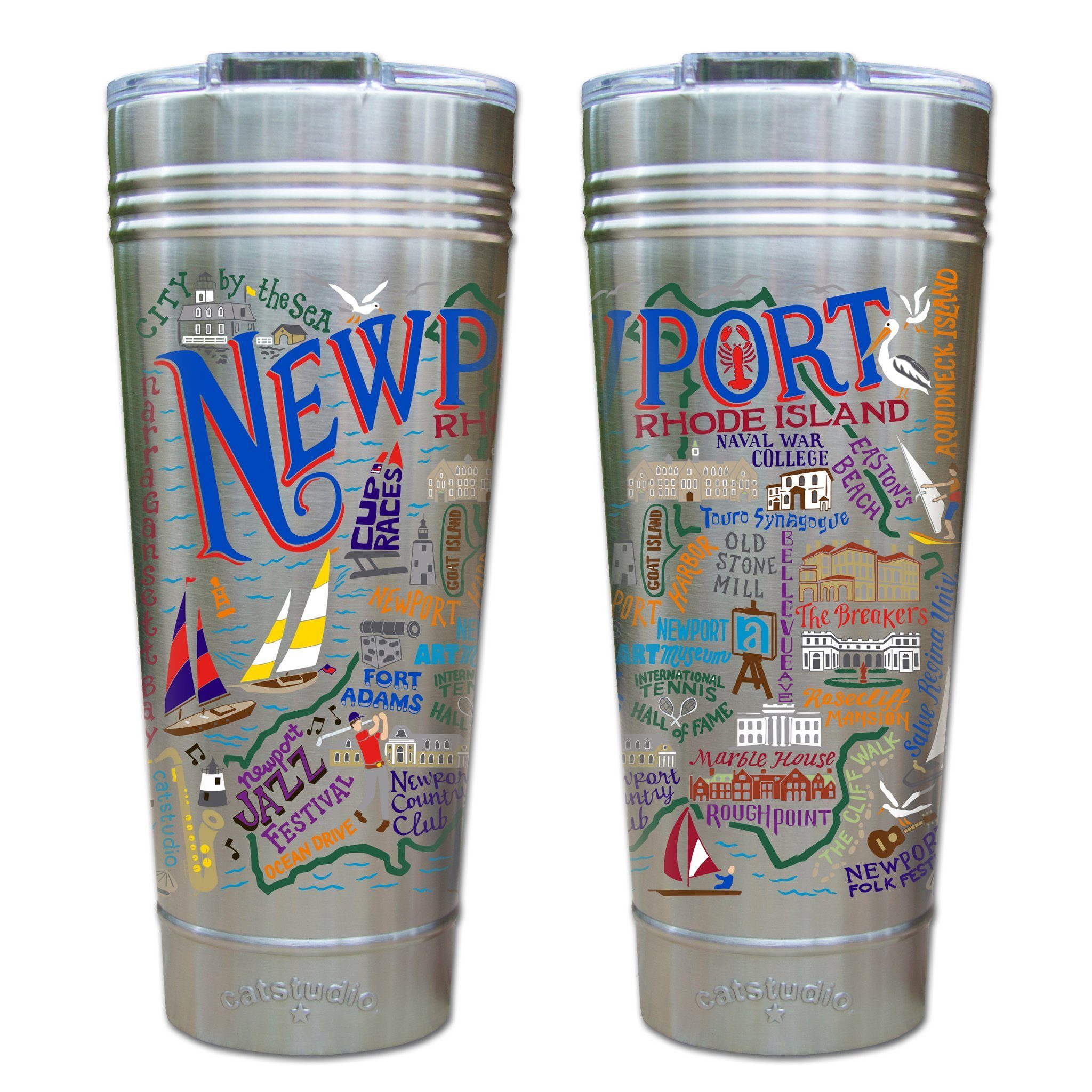 This original design celebrates the City by the Sea - Newport, Rhode Island!Our original art is now available to bring along on all your on-the-go adventures. This triple-walled 24 ounce thermal tumbler amazingly keeps beverages HOT for 4 hours and COLD for 6 hours. Add ice for up to 12 hours of cool sipping! Features a thoughtfully-engineered magnetic closure and a non-slip bottom to prevent spills and wet marks on surfaces. Innovation at its finest. Yippee!
