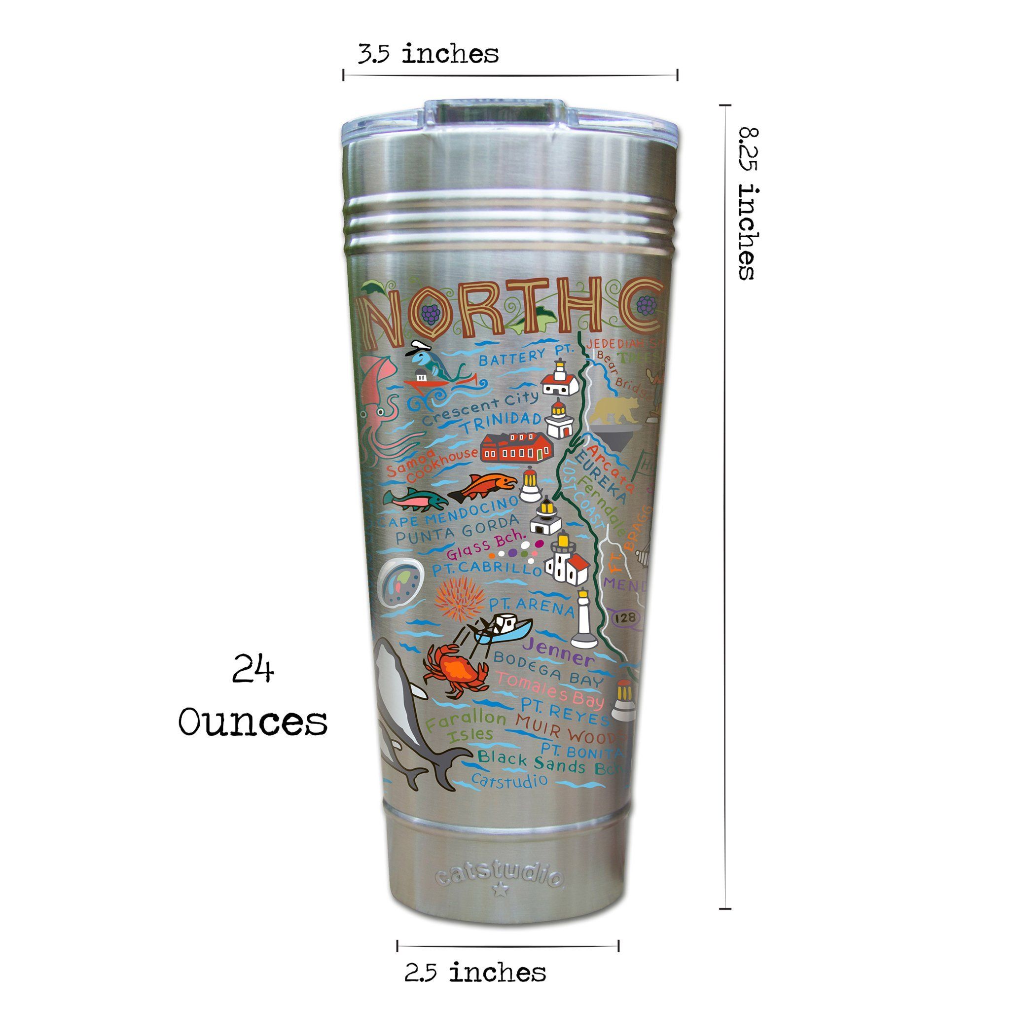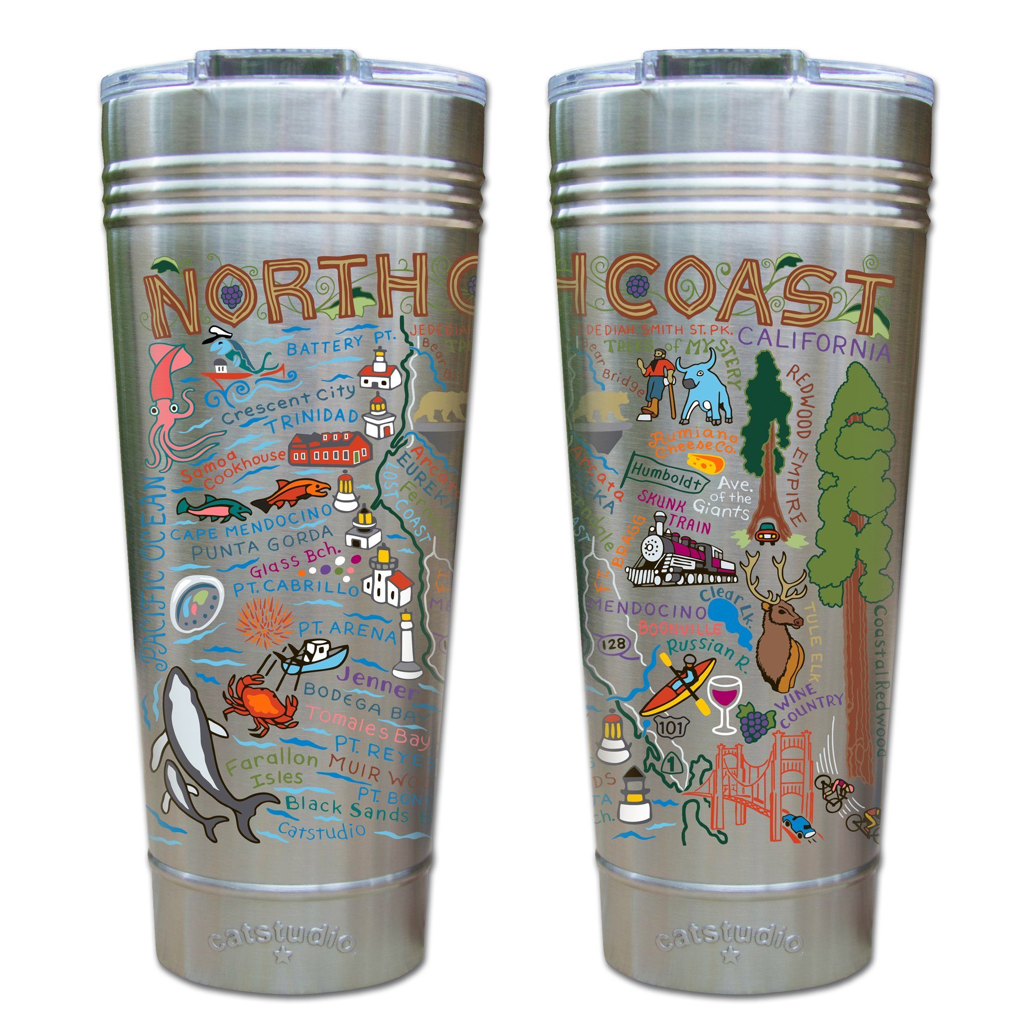 This original design celebrates North Coast, California!Our original art is now available to bring along on all your on-the-go adventures. This triple-walled 24 ounce thermal tumbler amazingly keeps beverages HOT for 4 hours and COLD for 6 hours. Add ice for up to 12 hours of cool sipping! Features a thoughtfully-engineered magnetic closure and a non-slip bottom to prevent spills and wet marks on surfaces. Innovation at its finest. Yippee!