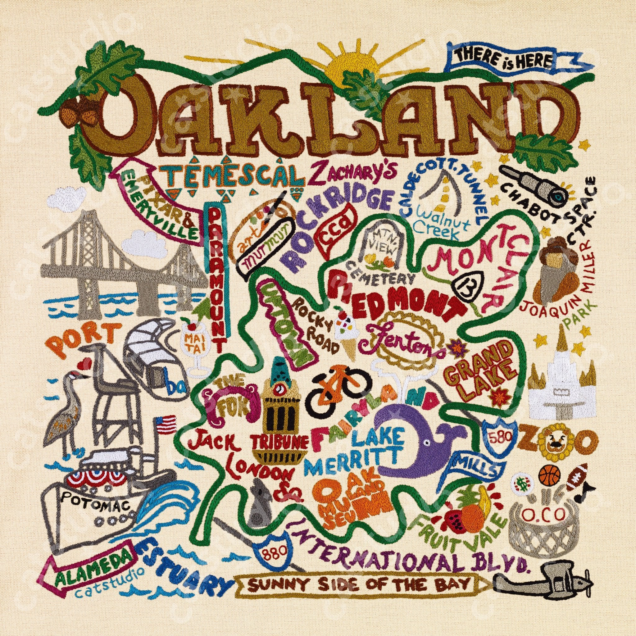 There is HERE! This original design celebrates the city of Oakland, California.
